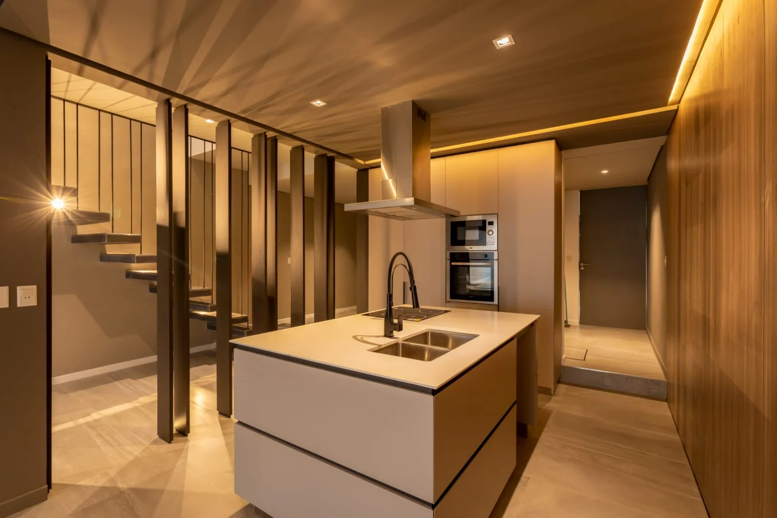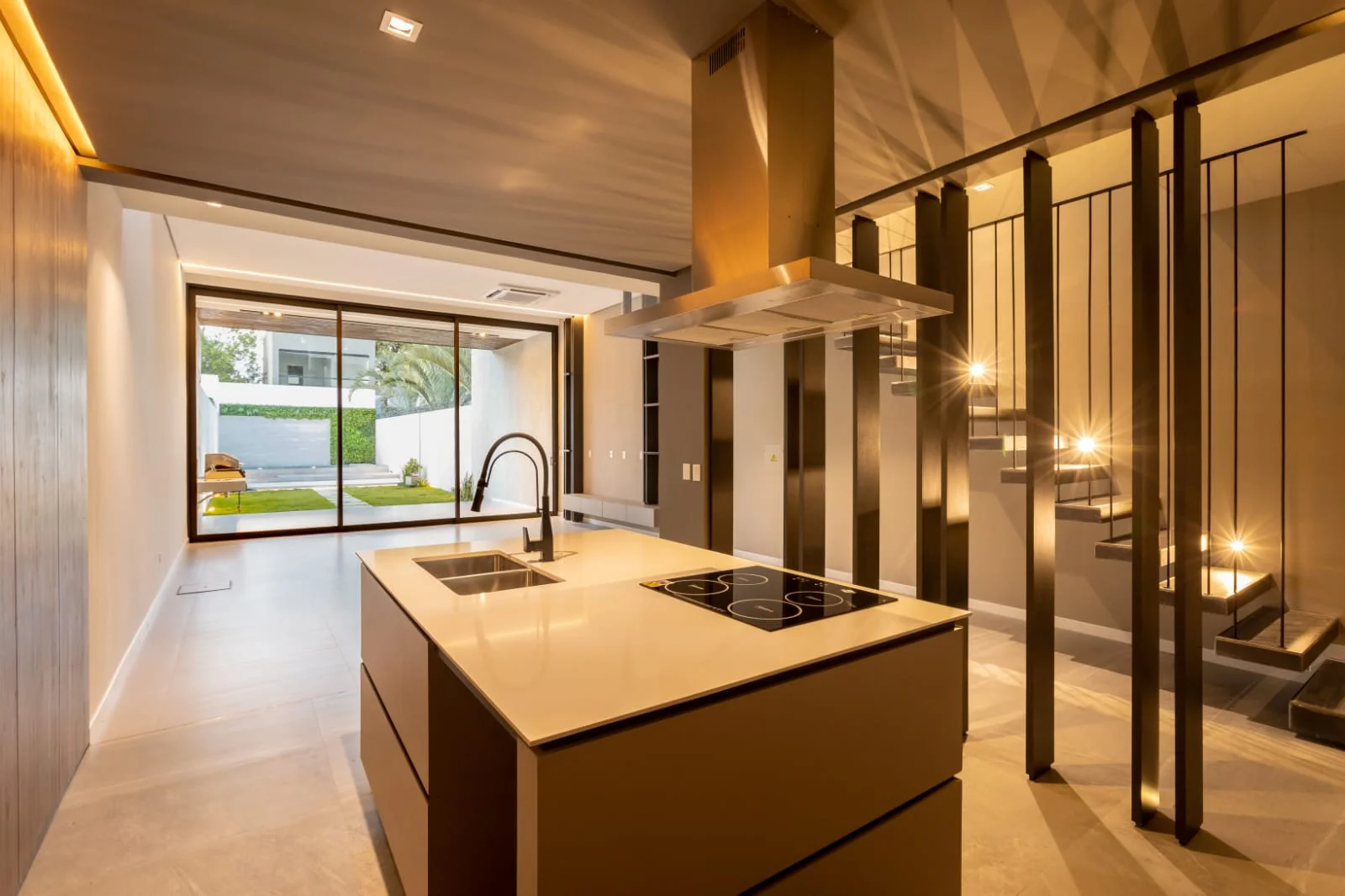 - Cocina integrada con mesada de cuarzo.