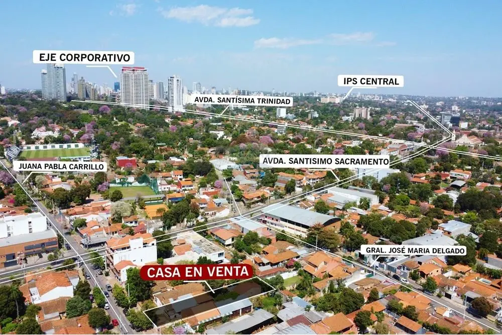 Ubicada en una zona estratégica de Asunción, cerca de la principales calles y avenidas, a pasos de la Avenida Primer Presidente, entre la Avenida Santísimo Sacramento y Gral. Artigas. Propiedad regida por el Plan Regulador Franja Mixta 2.