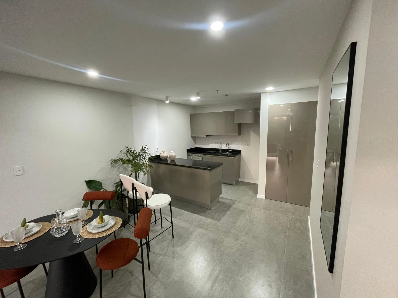 Terminaciones premium: Cocinas equipadas con mesada de granito, horno, anafe y campana: baños con mueble y espejo; aire aconidiconado y termo calefón instalados