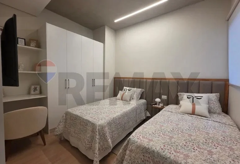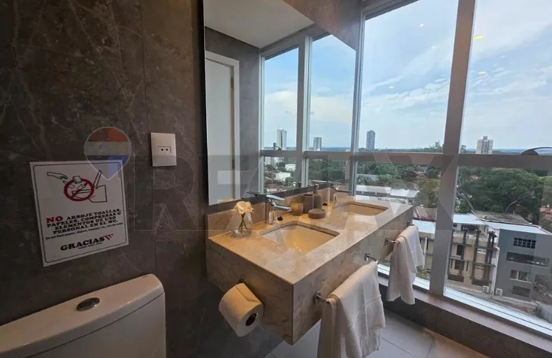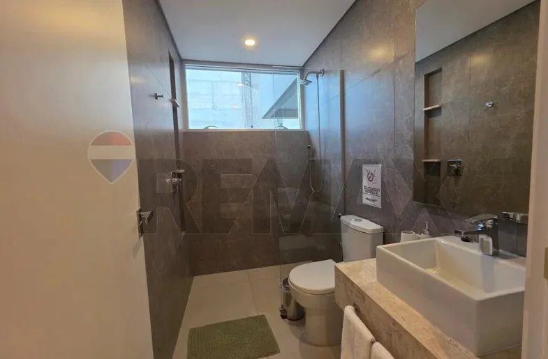 Se alquila departamento amoblado en Petra Tower ???? con dos dormitorios y una cochera ????. Ubicado en el piso 9, cuenta con 90 m² y tipología B. Dispone de dos dormitorios con placard (uno en suite), cocina semiintegrada equipada con anafe, horno, extractor, lavarropas, heladera, microondas, entre otros; living comedor con sofá, televisor y juego de comedor; baño social compartido con la segunda habitación, balcón y aires acondicionados en todos los ambientes. La cochera está incluida. El edificio ofrece piscina ????????, solárium ☀️ y gimnasio ????️.