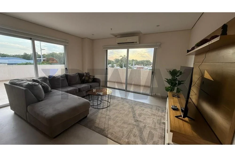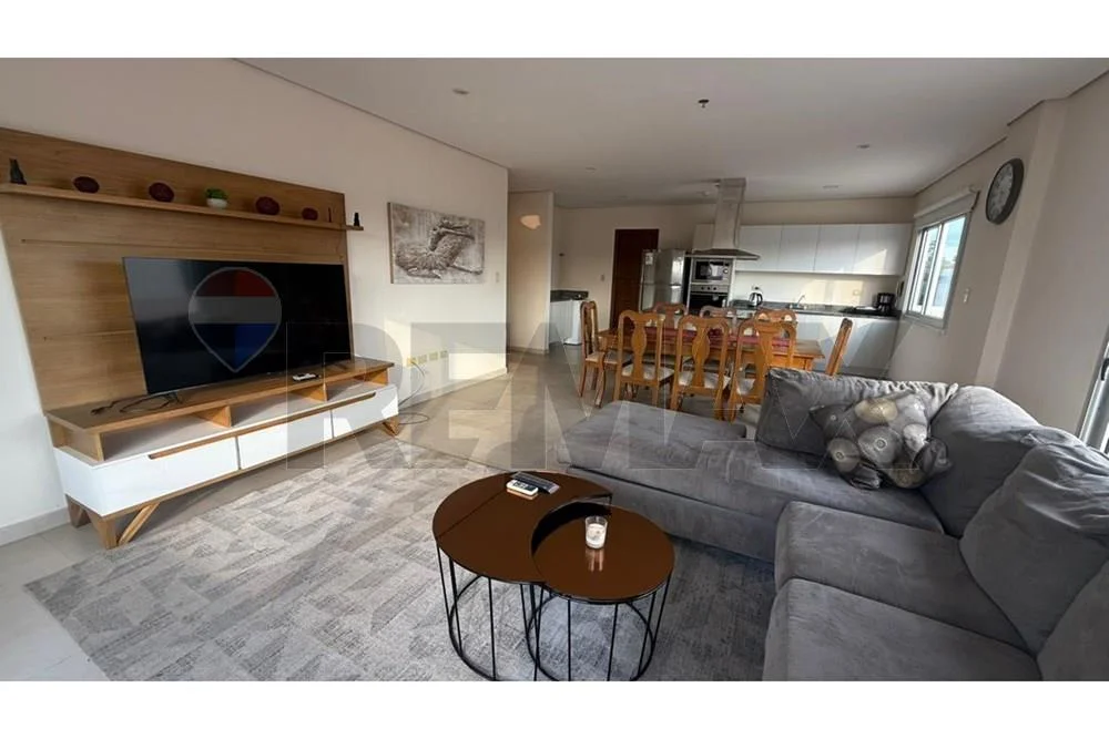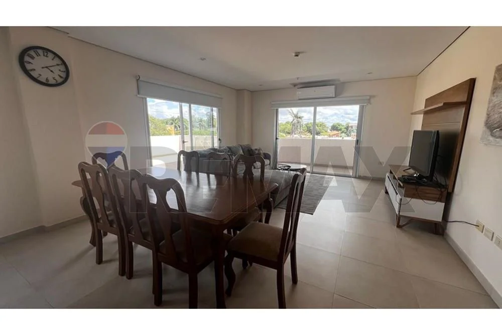 - Amplio estar comedor con aire acondicionado, amoblado con mesa comedor y 8 sillas, living, rack de tv, cortinas roller en todos los ventanales.