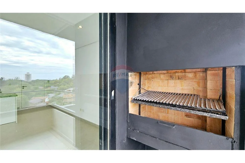 Baño social,Cómodo balcón con parrilla, al cual se puede acceder tanto desde la sala como desde el dormitorio.