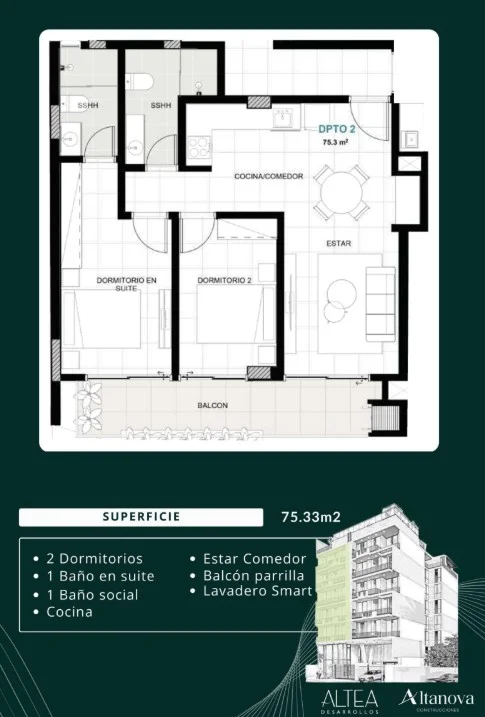 Superficie: 75.30 m²