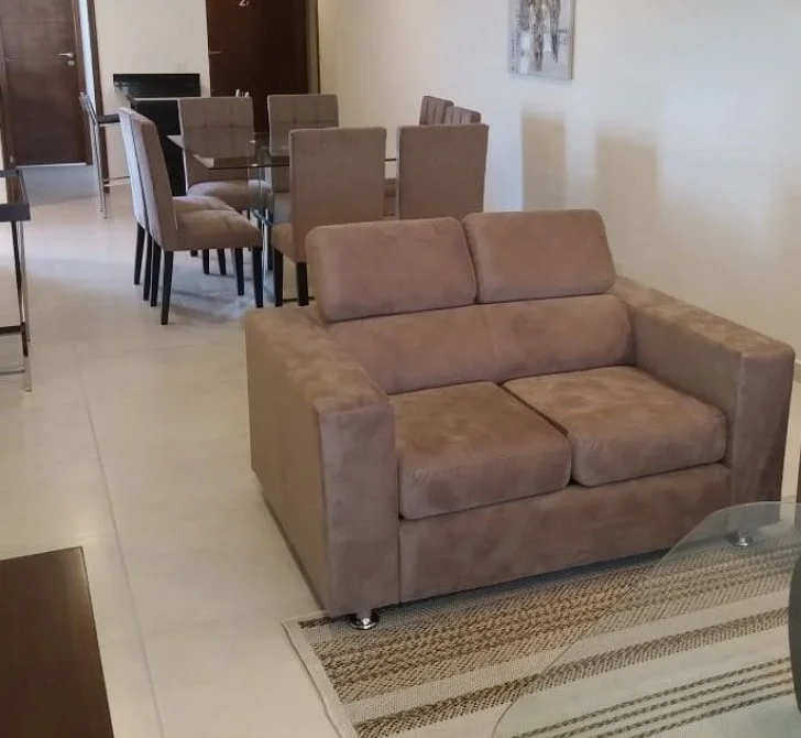 Dos dormitorios en suiteSala de estar, comedorCocina AmobladaBaño socialBalcon con parrilla 1 cocheraÁrea de servicio y lavadero