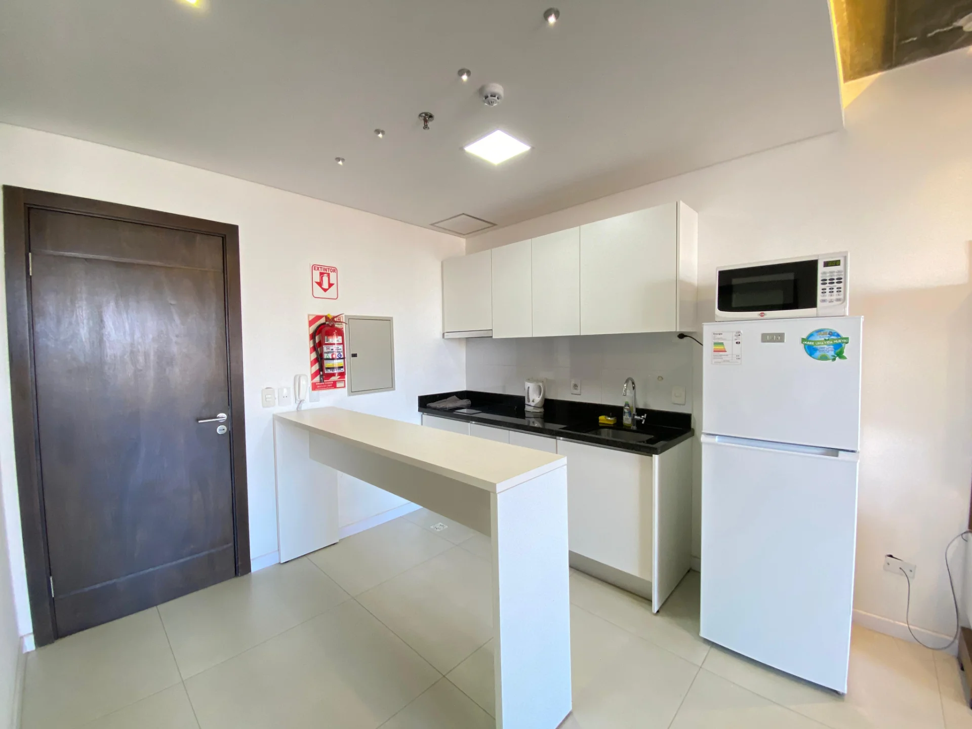 Cocina con desayunador, placa, extractor