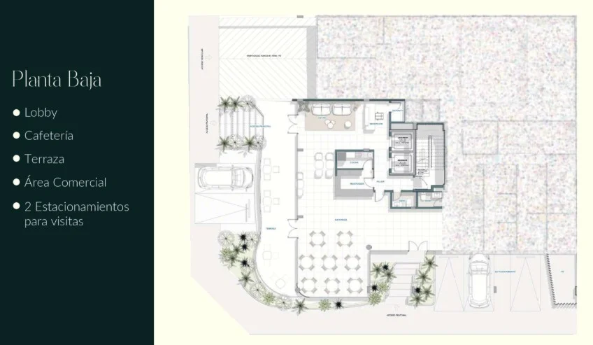 .Cafetería boutique con estacionamiento para visitas.