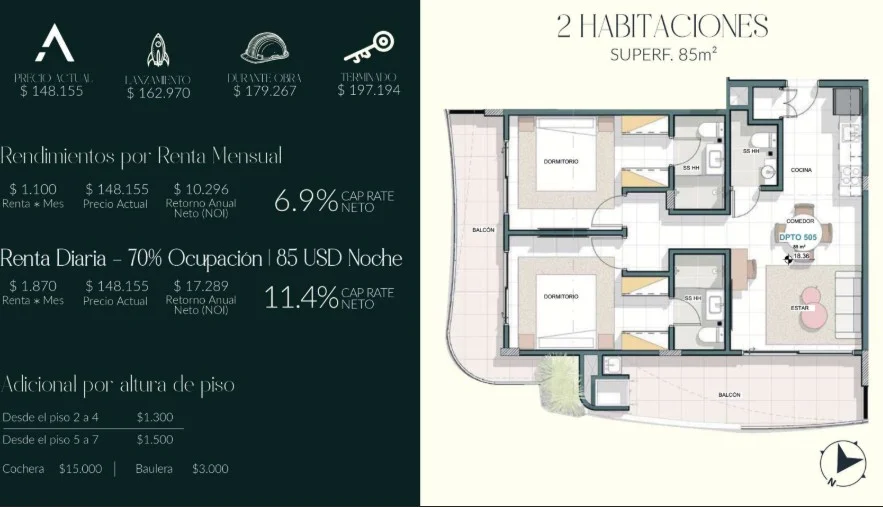 ✔ Departamentos con balcones (¡luz natural y vistas panorámicas!).