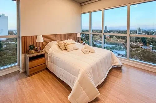 ALQUILO DEPARTAMENTO DE DOS DORMITORIOS EN PETRA TOWER* Viví la experiencia de altura en el edificio más emblemático de Asunción. https://maps.app.goo.gl/q2HFCFzbxrx4MYVCA. *Características del departamento:* * 2 dormitorios (uno en suite) * Cocina semiintegrada con anafe, horno, extractor, conexión para lavarropas * Living comedor * Baño social, compartido con la segunda habitación * Balcón * Cochera incluida * Aires acondicionados en todos los ambientes y placares empotrados * Piso 14 * Superficie: 90m² * Tipología A *Amenities y servicios del edificio:* * Piscina panorámica en piso 43 * Solárium con vistas a toda la ciudad * Gimnasio totalmente equipado * Quinchos climatizados * Lobby de doble altura con seguridad 24 hs * Ascensores de alta velocidad ???? *Precio de Alquiler: USD 1.800