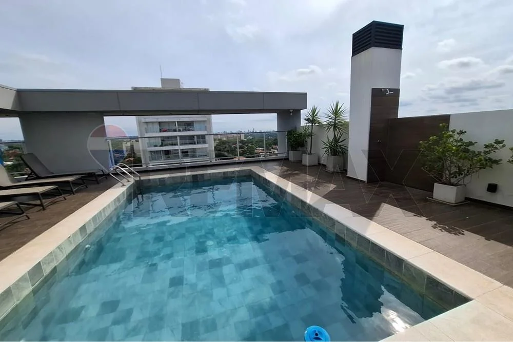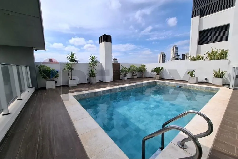 Piscina y solarium con vista a la ciudad