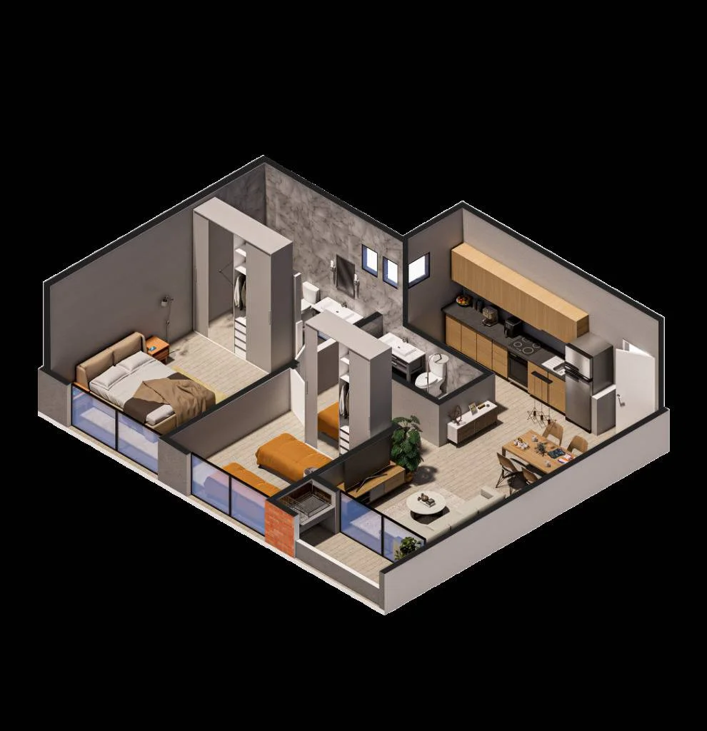 1 Dormitorio en Suite | 2do Dormitorio | Baño Social/Fliar. | Cocina | Sala-comedor | Balcón con Parrilla.