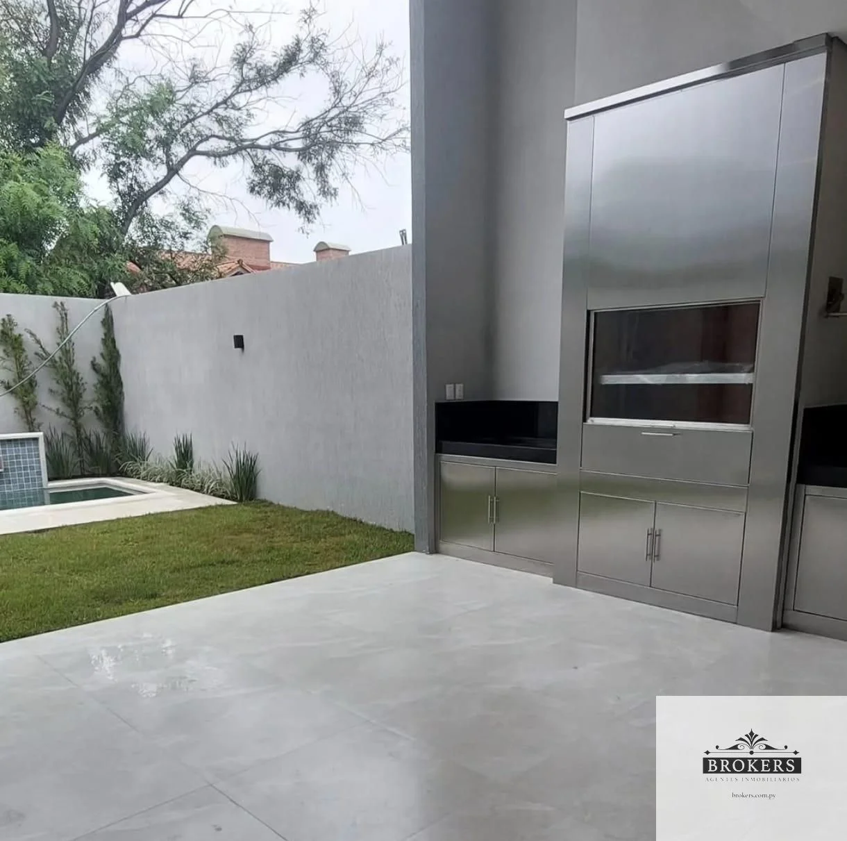 Amplia sala comedor, garage para 2 vehículos, living y comedor social, galería con parrilla de acero inoxidable, amplio patio empastado, piscina, baño social