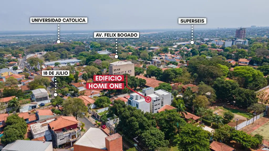 Se vende el edificio entero “HOME ONE” generando 8.5% de rentabilidad anual, ubicado sobre la calle 18 de Julio c/ Avda. Gral. Santos, en el barrio San Vicente. A metros del Colegio Alpha College y a pasos del Campus de la Universidad Católica. Rodeado de diversos comercios, locales gastronómicos, supermercados.