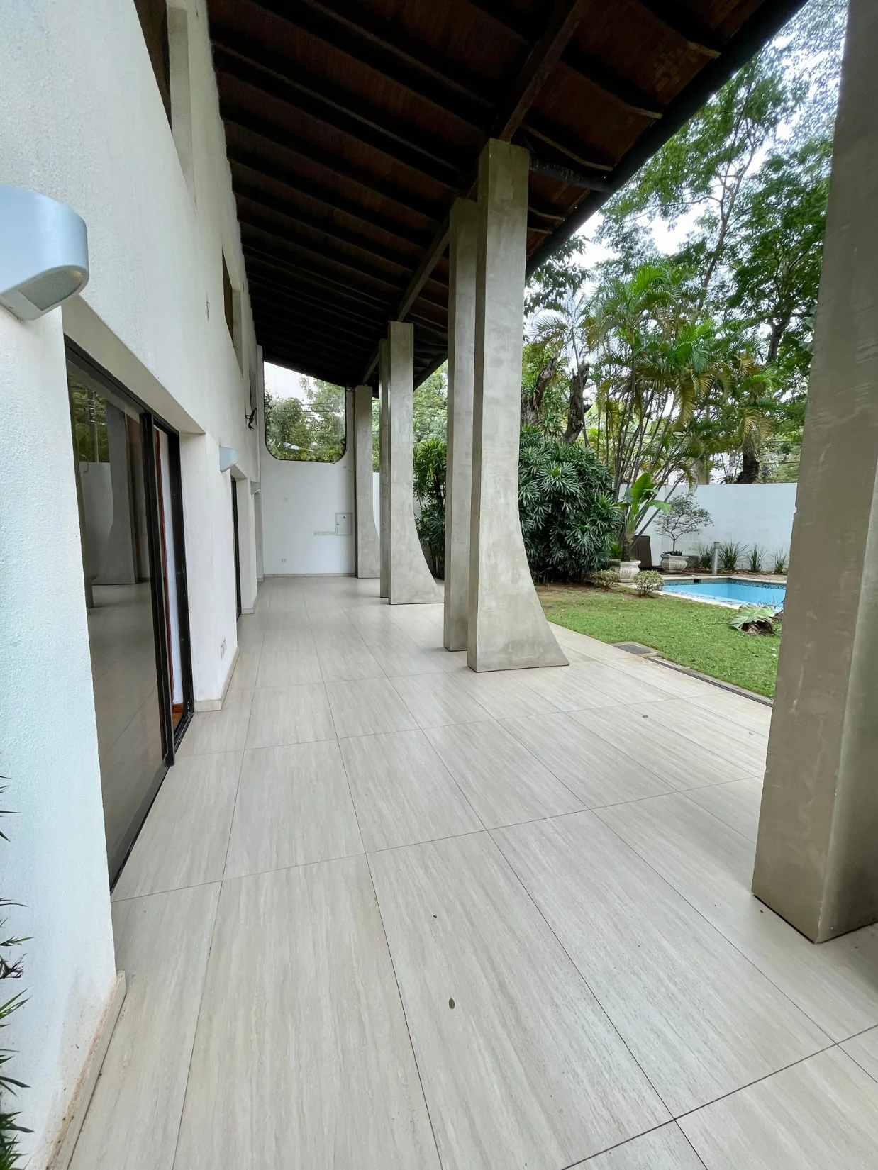 * Piscina amplia con solárium (piso atérmico en bordes y ducha; cerco de blindex transparente)
