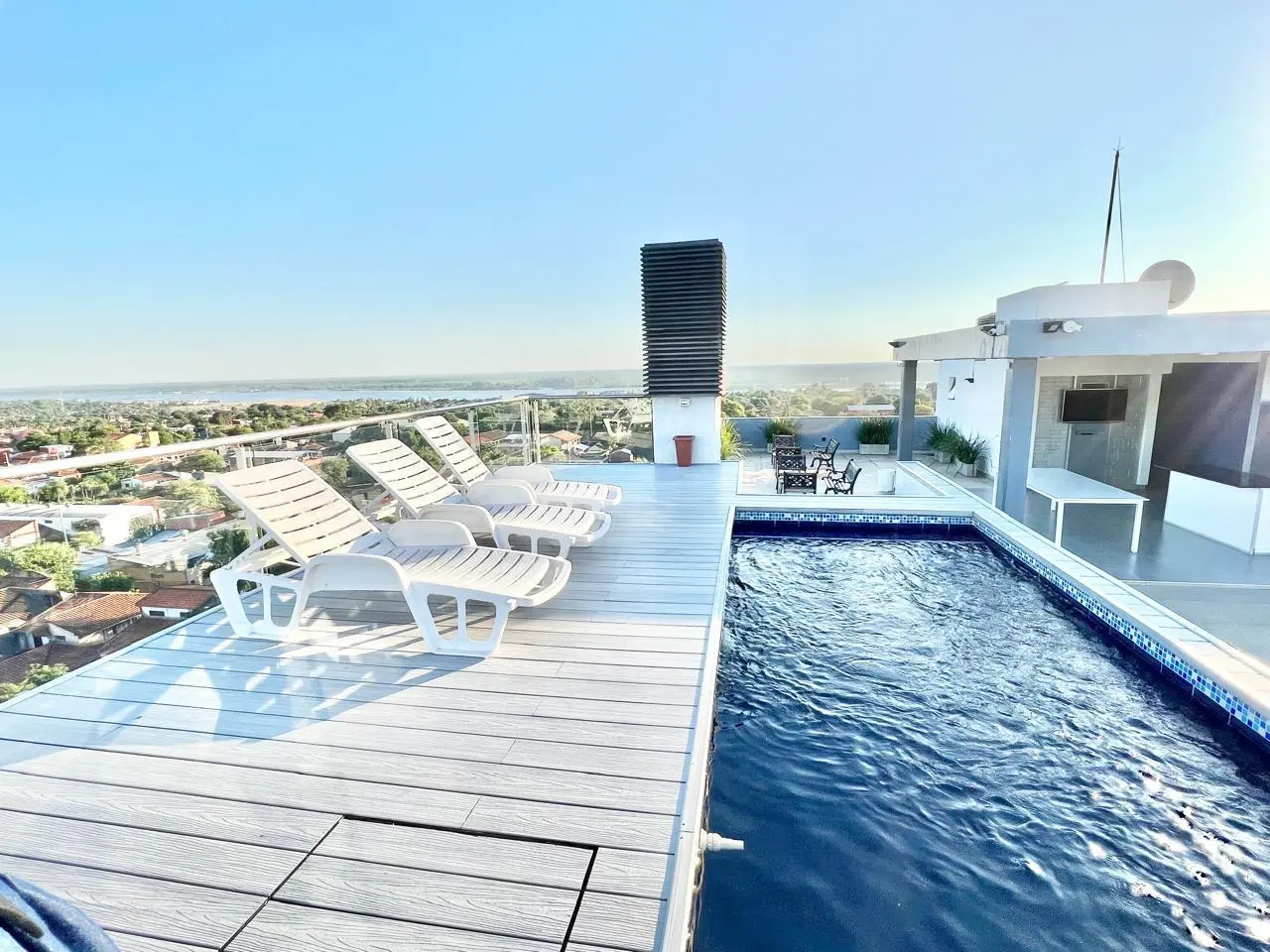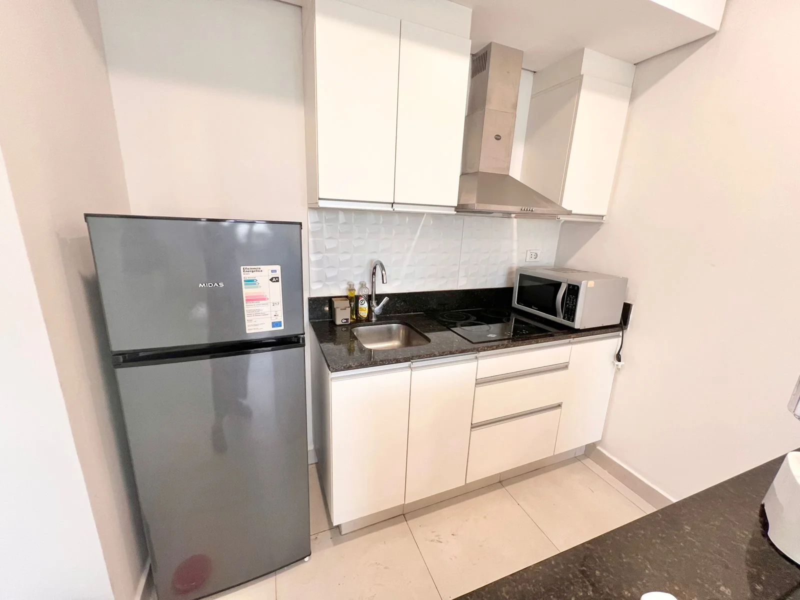 En Alquiler Departamento Semiamoblado de 1 Habitación en Sajonia A483 Dimensiones 49 m2 - 1 habitación - 1 baño - Living/comedor integrados - Cocina amoblada y equipada con cocina vitro cerámica y extractor - Área de lavarropas - Cochera techada Cuenta con: Microondas, heladera, living, rack TV, TV, cama, mesitas de cama, placares, cortinas, split - Buena iluminación natural - No cuenta con balcón Todos los ambientes cuentan con luces led, split, placares y termocalefon Amenities Piscina, quincho climatizado con parrilla y con baño social, amplia terraza, moderno ascensor, CCTV, portero 24 hs., CCTV y generador para áreas comunes ? Precio del Alquiler Gs. ***IVA, agua y expensas incluidos