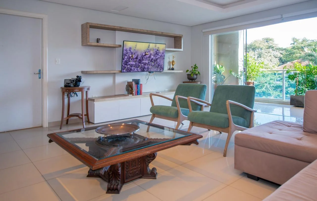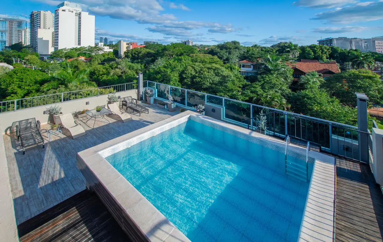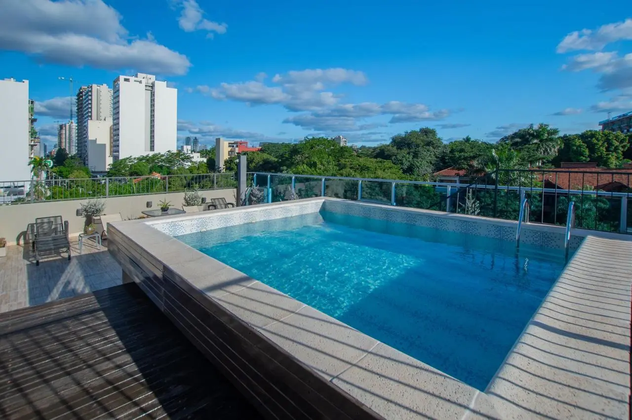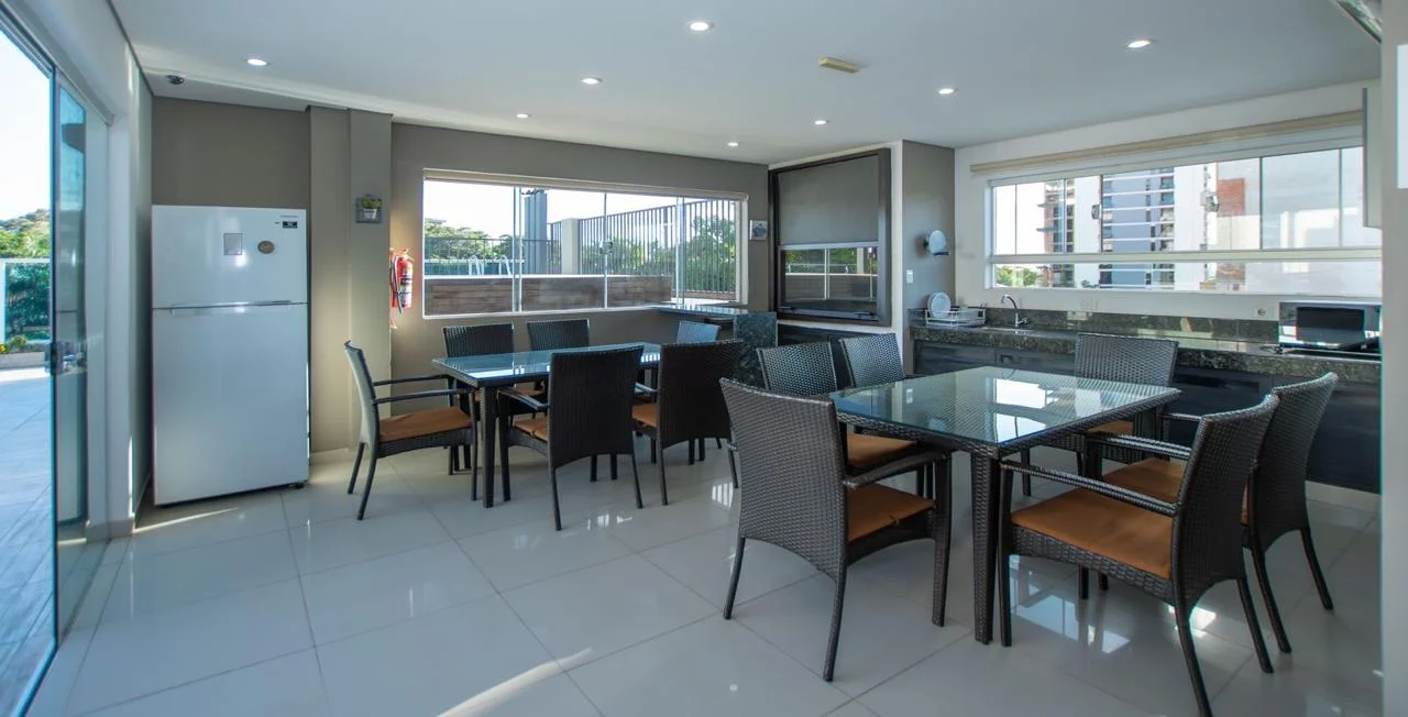 EN VENTA DEPARTAMENTO Edificio YRASEMA, sobre Molas Lopez 220 m2 propios Características: 3 dormitorios (1 en suite) 1 Baño familiar 1 Baño social Living-Comedor Cocina integrada Amplio Lavadero Dormitorio y Baño de servicio 2 Balcones Parrilla 1 Cochera Amenities Piscina Quincho con parrilla Gym Precio de Venta: 280.000 USD