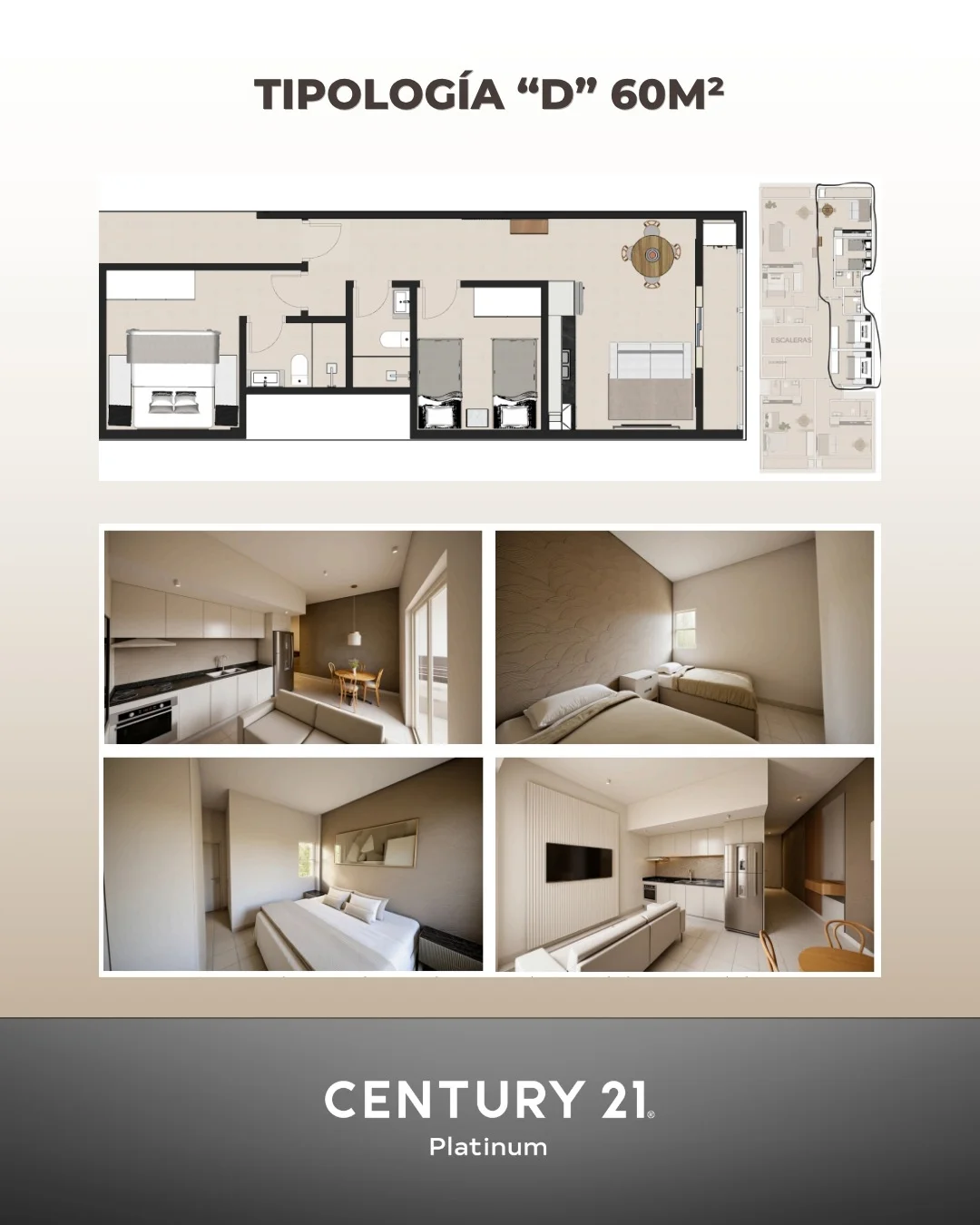 ???? Tipología D: 2 dormitorios de 60 m²