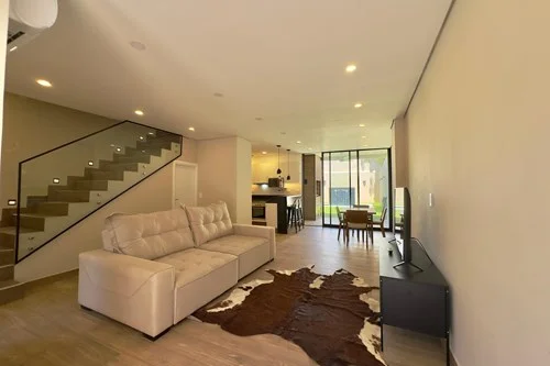 Planta Baja -Estacionamiento para 2 vehículos -Escritorio -Baño social -Cocina amoblada con luces LED equipada con horno, anafe y purificador -Sala comedor -Quincho con Parrilla -Lavadero amoblado y cerrado -Depósito Planta Alta -1 master suite con balcón, walking closet y tocador. -2 habitaciones secundarias - Amplio baño familiar Detalles adicionales: - Pisos de porcelanato Portobello y Portinari - 5 Aires acondicionados Goodweather - Mobiliario ACHON - Mesadas GRAMA - Mamparas corredizas en los baños - Griferías y sanitarios DECA - Espejos con Luces Led - Ventiladores OBS* Apto para crédito bancario