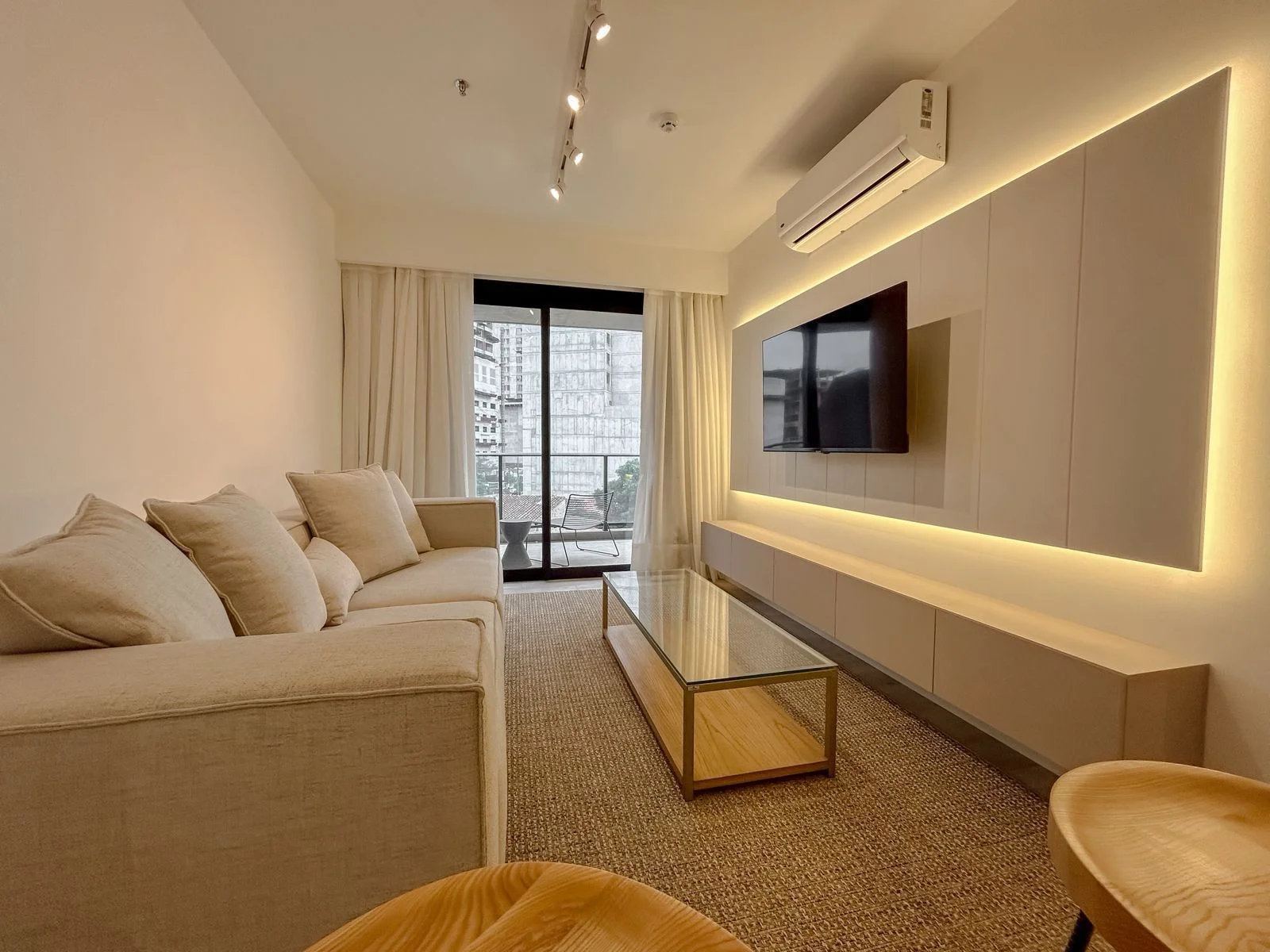 •Luminoso living con puertas al balcon en cristal templado tipo DVH para evitar el sonido del exterior.