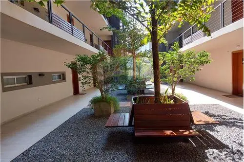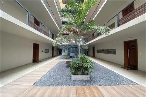 Un patio interior que ofrece ventilación cruzada y luz natural en todos los departamentos.
