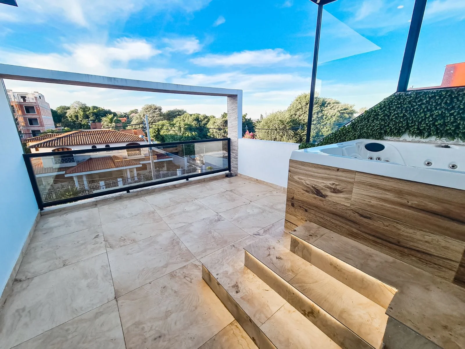 -Jacuzzi con luces y control de temperatura.