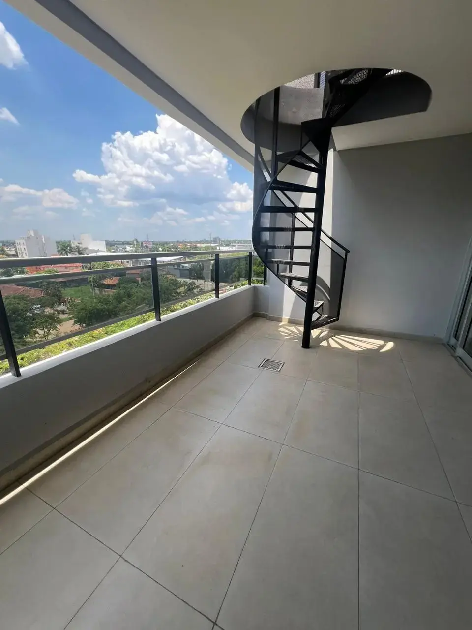 Gran balcón con parrilla con vista a la plaza