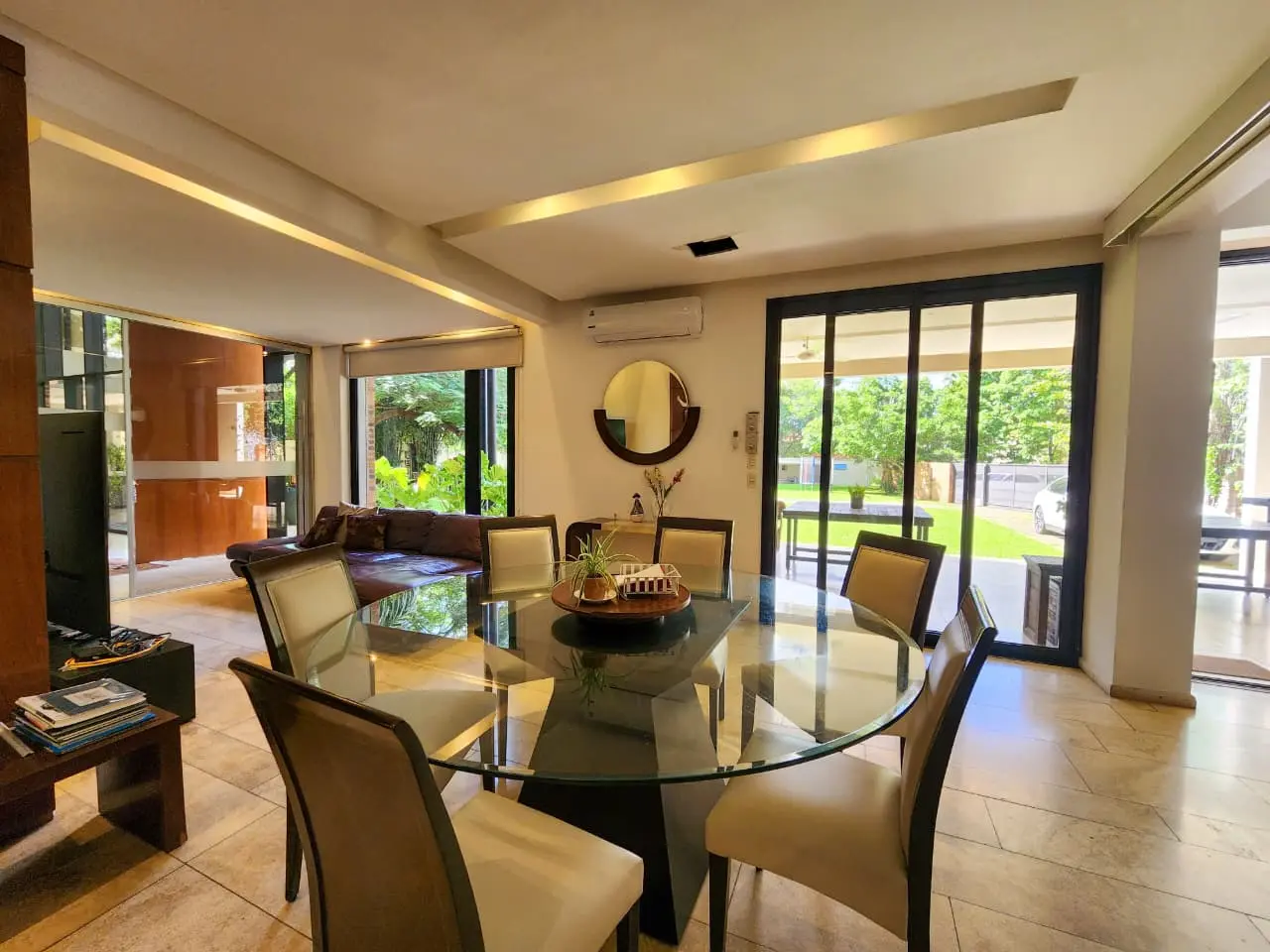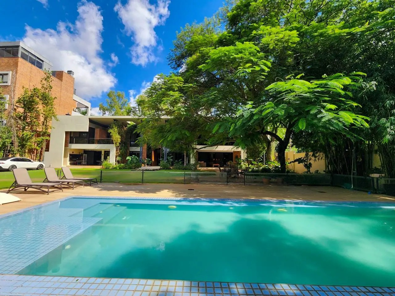Descubra una residencia de lujo incomparable, donde el diseño, la funcionalidad y los detalles de categoría se fusionan para crear un estilo de vida excepcional. Ubicada en un exclusivo complejo privado con seguridad 24 horas, esta imponente propiedad se asienta sobre un terreno de 1.988 m², ofreciendo la máxima privacidad y confort. Al ingresar, será recibido por una majestuosa planta baja que deslumbra con un espacioso living-comedor de doble altura, inundado de luz natural y realzado por un sereno jardín interior. La cocina, equipada con una elegante isla, se integra armoniosamente con un estar comedor diario, creando el escenario perfecto para reuniones familiares y entretenimiento. La galería con parrilla invita a disfrutar de momentos inolvidables al aire libre, mientras el extenso jardín, meticulosamente diseñado con un paisajismo exquisito y una amplia piscina. Un versátil espacio multiuso con baño ofrece infinitas posibilidades, ideal para proyectar un quincho, gimnasio o incluso una dependencia para personal. El subsuelo revela un mundo de sofisticación con una exclusiva cava de vinos y un acogedor estar de TV o sala de entretenimiento, perfectos para el ocio y la relajación. Ascendiendo a la planta alta, la master suite con un amplio vestidor, baño privado y un balcón expansivo que ofrece vistas panorámicas al exuberante jardín. Cuatro dormitorios adicionales, cada uno con su propio baño en suite, garantizan el máximo confort y privacidad para todos los residentes.