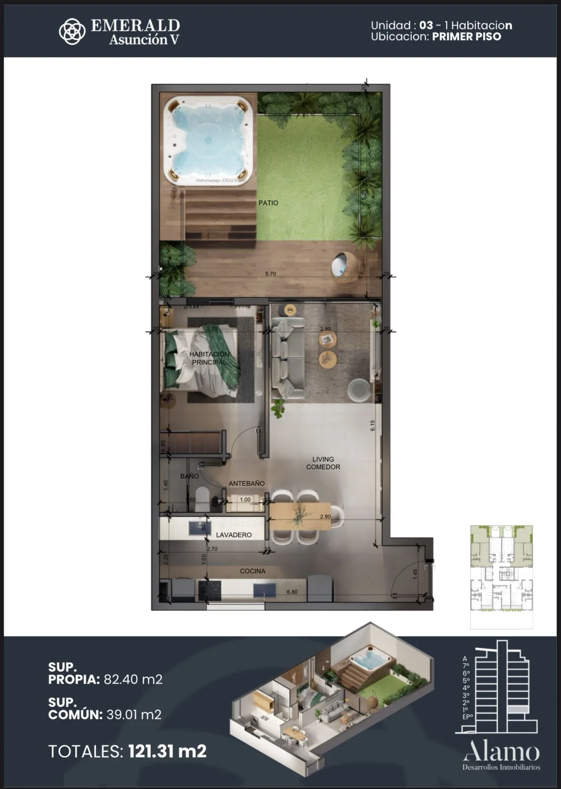 + U$S 1 gastos comunes / U$S 1,950/m2