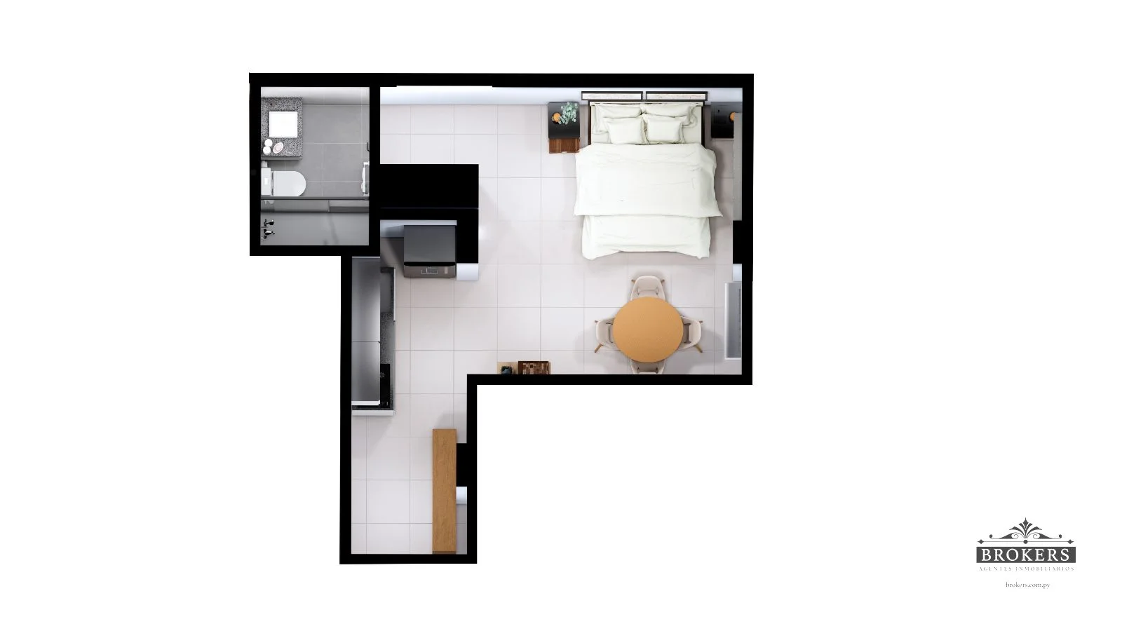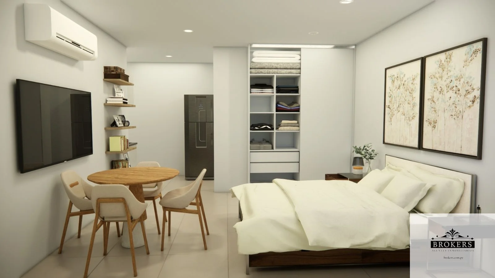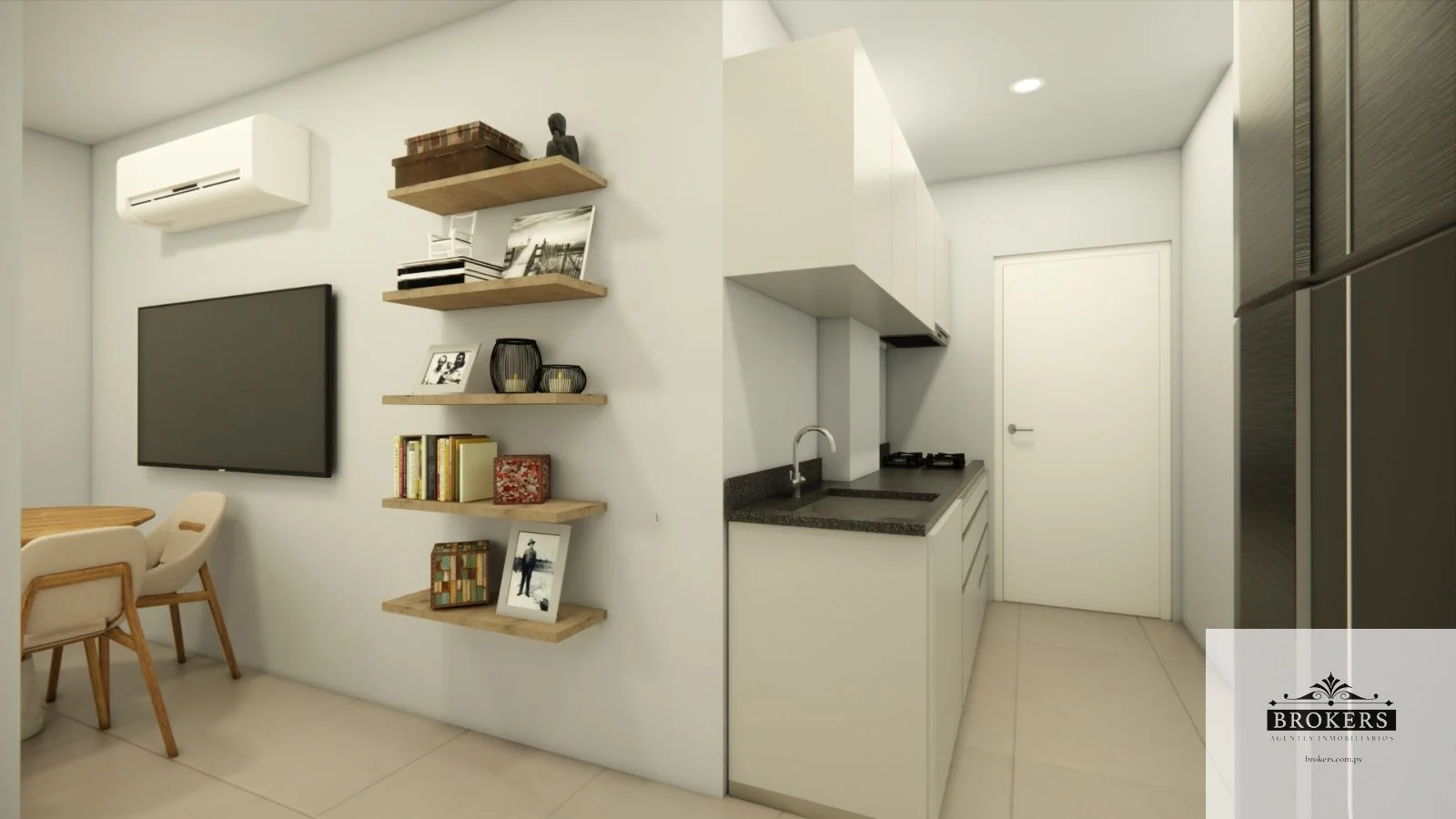 Incluido en el precio del monoambiente: Un placard, muebles de cocina, 1 aire acondicionado, cerradura smart y el sistema de domótica para el manejo de las luces y el aire acondicionado.