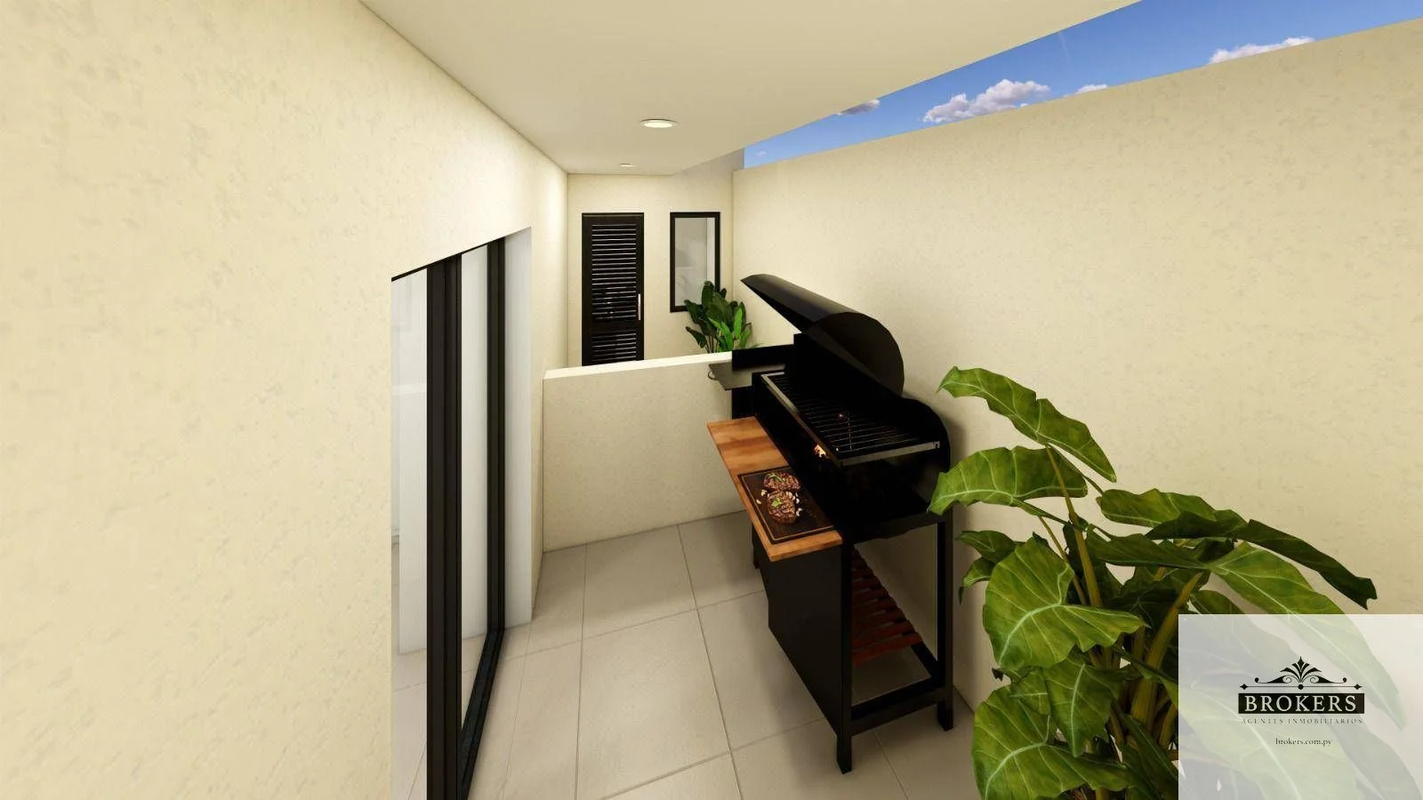 Balcón semi abierto con espacio para parrilla, plantas, etc.