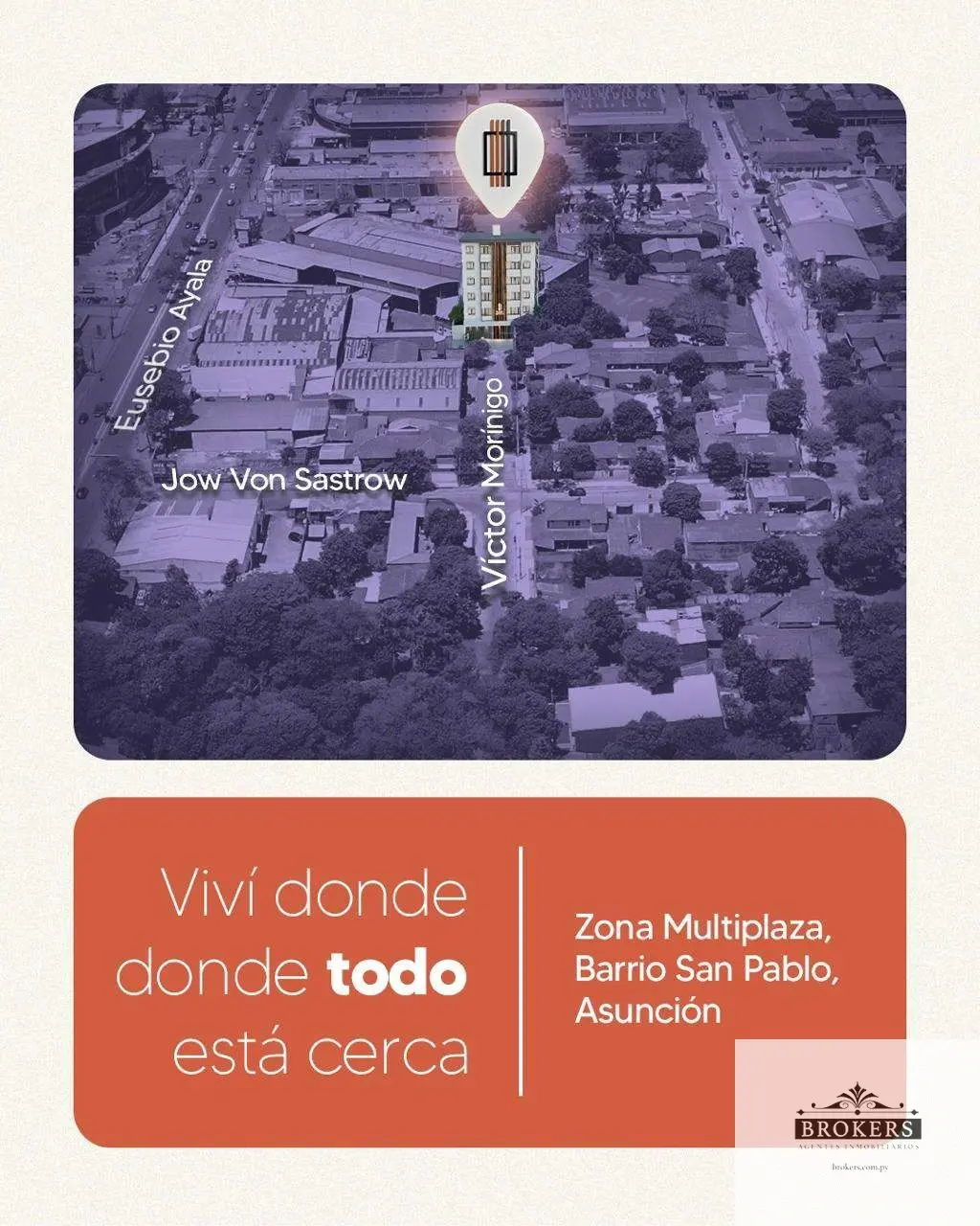 A dos cuadras de la Avda. E. Ayala, y cerca del Shopping Multi Plaza y de TUPI, con acceso rápido al interior del país y al centro de Asunción.
