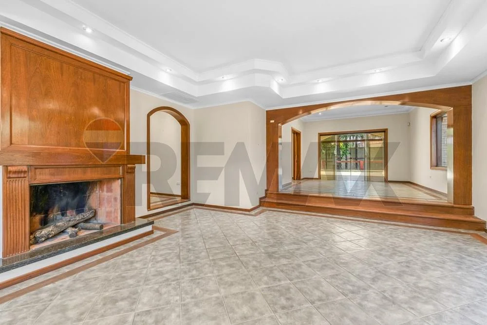 Amplio living comedor social con chimenea