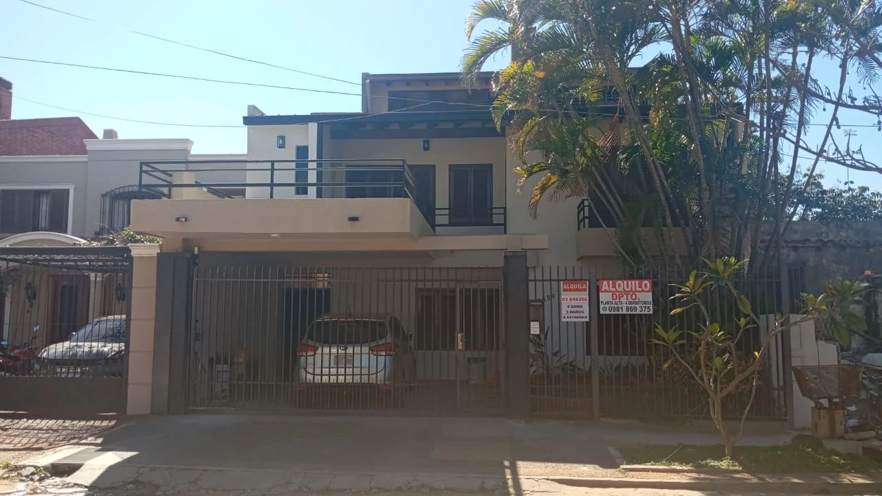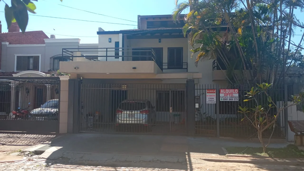 Se Alquila Amplio Departamento en Bo Mburicao 220 m2 cubiertos propios 1er nivel ✔Estar Cocina Comedor integrados Cuenta con Anafe, campana y agua caliente en bacha Piso parquet de lapacho lustrado, escalera de madera Instalación para AA. ✔Baño familiar con agua frio caliente, termo calefón, ducha con lava pie, ducha sanitaria, mesada de granito negro. Amplio ventanal ✔3 Dormitorios uno en suite, todos con amplios placares y balcón Pisos de parquet de Lapacho lustrado. ✔ Baño en suite con agua frio caliente, termo calefón, ducha con lava pie, ducha sanitaria mesada de cuarzo blanco ✔Terraza amplia con vista al frente. Lavadero con mesada de granito y bacha de inoxidable, con instalación para maquinas de lavar y Secarropa 2do nivel ✔Espacio Multi función, puede ser utilizado como 4to dormitorio, sala de estudio o juegos etc.Piso de madera natural, amplios placares Instalación para AA ✔ 2 estacionamientos con portón basculante Detalles: El departamento fue Remodelado y adecuado para ser funcional, cálido y luminoso, todos sus ambientes cuentan con iluminación natural. Los baños del 1er nivel cuentan con instalaciones sanitarias y eléctricas nuevas así como también la cocina y el lavadero. Las instalaciones eléctricas fueron actualizadas así como también la iluminación de los espacios. Costo del alquiler: ***Gs. Iva incluido ? Consultá sin compromiso y agendá tu visita. ¡No dejes pasar esta casa muy bien ubicada, amplia y segura! El lugar donde siempre soñaste vivir, existe!!!