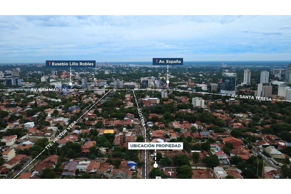 En venta amplia propiedad en esquina en barrio Ycua Satí ubicado sobre la calle Austria y Raúl Carmona, zona residencial cercano a la avenida Santa Teresa y Paseo La Galería. Cuenta con construcción a demoler, propiedad con gran potencial para inversión.