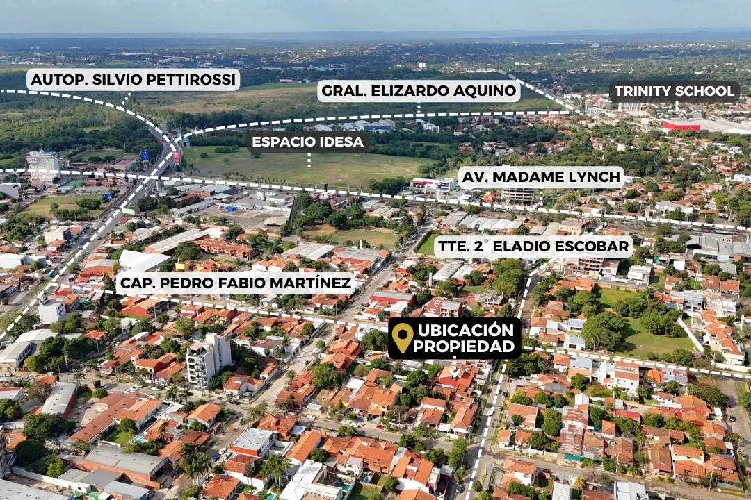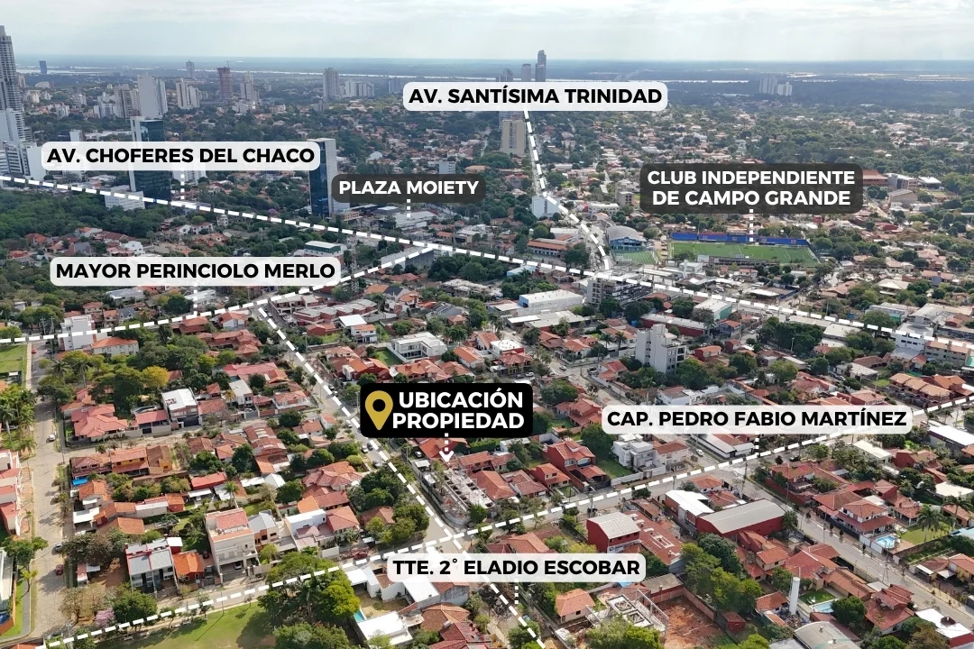 Ubicado en una zona residencial muy cotizada, este terreno ofrece una excelente oportunidad para proyectos habitacionales, dúplex o desarrollo comercial. A solo 3 cuadras de la Avda. Aviadores del Chaco y a minutos de los principales ejes de la ciudad: Paseo La Galería, Shopping del Sol, Avda. Molas López, Santísima Trinidad y más.