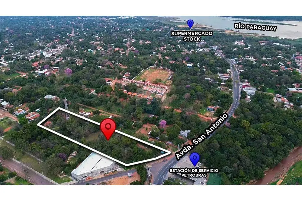 Con sus 66 mts. de frente sobre la Avenida San Antonio, su acceso de calle a calle, en la precisa intersección con la calle Cabo 7 Silvio Ovelar que conecta al centro de Ñemby y acceso Sur, y con un denso tráfico en frente todo el día, una exposición y visibilidad máximas, este terreno es ideal para cualquier emprendimiento comercial, especialmente de retail!!