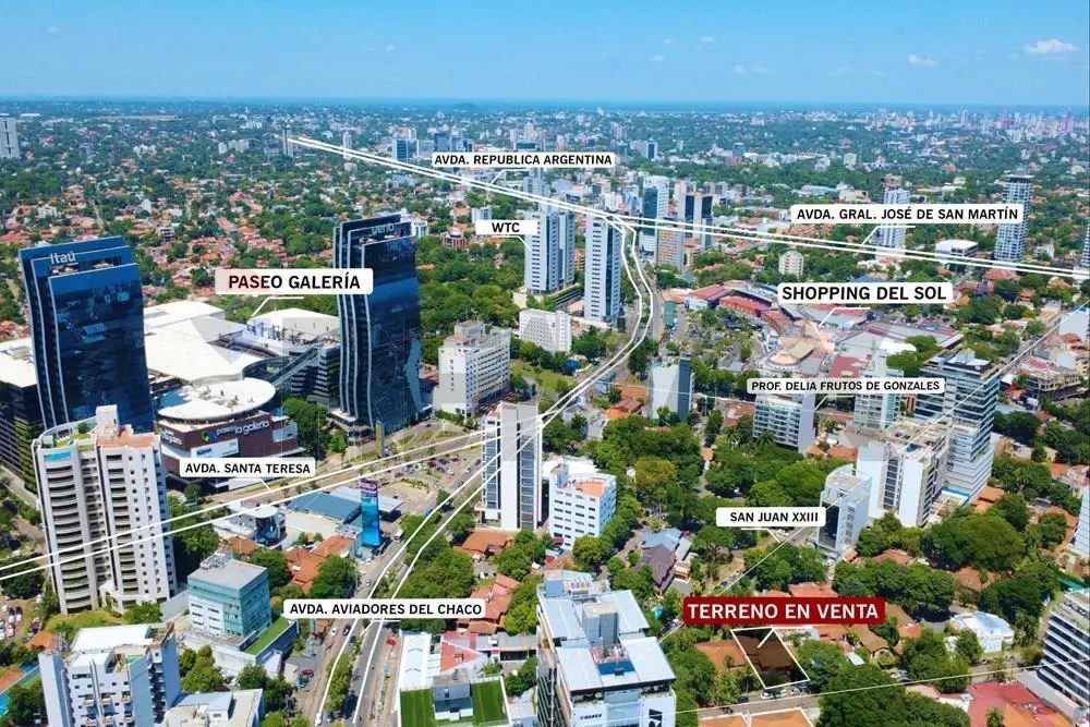 Exclusivo terreno en unos de los Bo. mas prestigiosos de Asunción ubicado a 50 metros del Edificio Skypark. Cercano al Shopping del Sol, Paseo Galería, Eje corporativo.