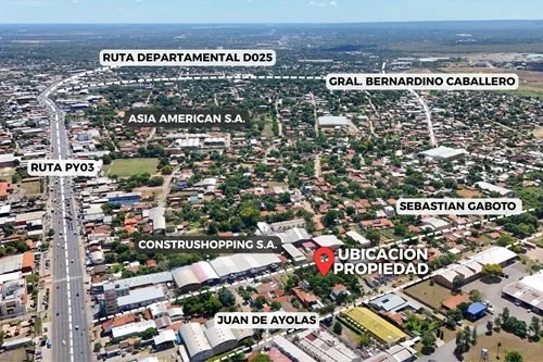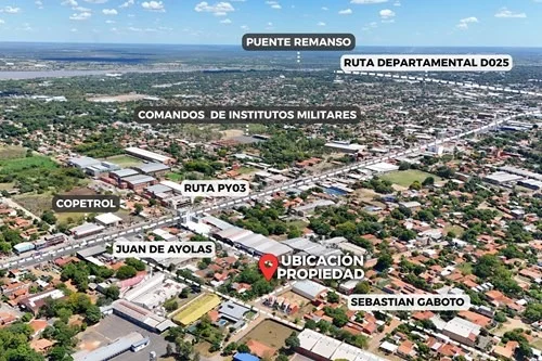 Se encuentra a minutos del Shopping Mariano y de la Asociación Rural del Paraguay, en una zona con perfil industrial y comercial, ideal para desarrollo logístico, depósitos, showrooms, industrias o emprendimientos de gran escala.