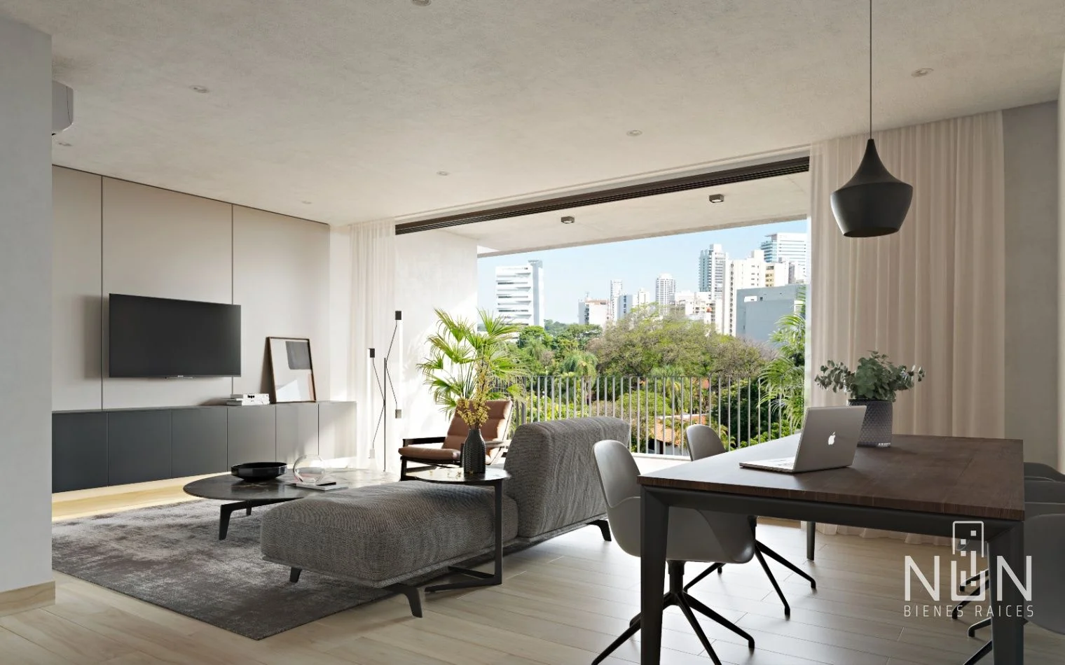El departamento cuenta con una superficie total de 115 m², cuenta con 2 amplios dormitorios en suite más un baño social. La cocina está completamente amoblada y equipada con horno, anafe, campana y microondas, mientras que los ambientes climatizados aseguran una temperatura agradable durante todo el año. Además, dispone de un balcón con parrilla, ideal para disfrutar de momentos en familia o con amigos. La estética del espacio refleja un lujo silencioso, caracterizado por materiales nobles y líneas limpias que brindan una sensación de sofisticación sin ostentación.