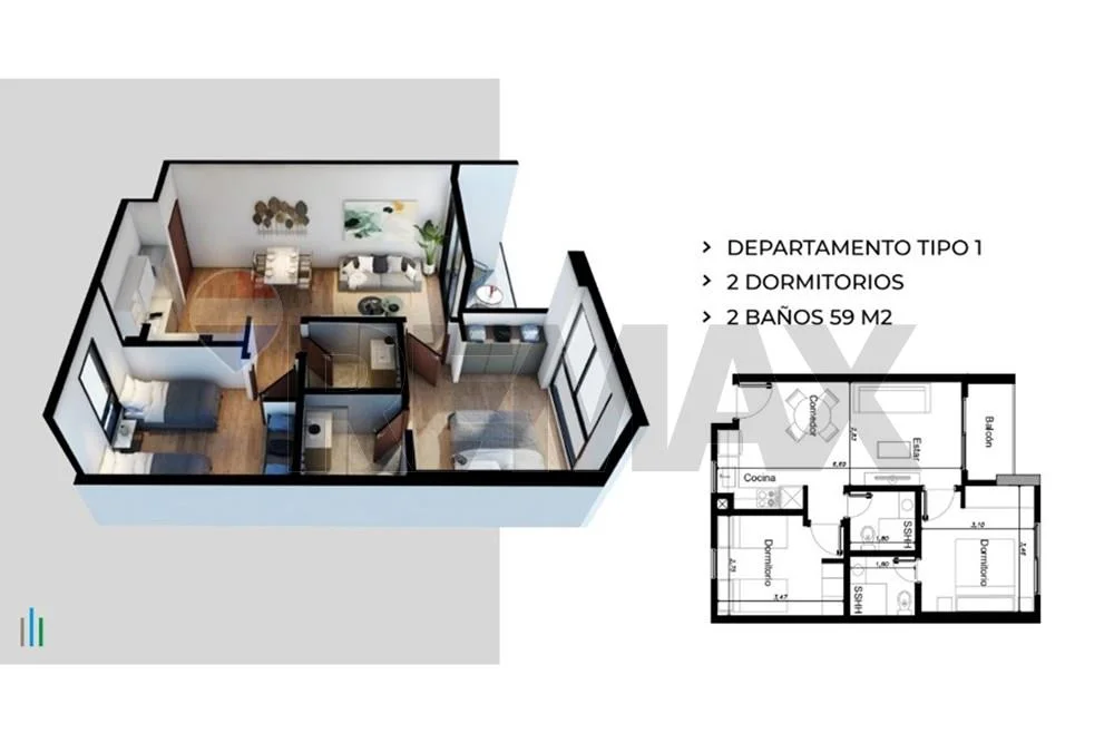 DEPTO. DE 2 DORMITORIOS EN MATRISA LILLO