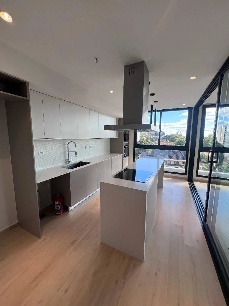 Cocina amoblada y equipada con mesada de granito, campana, horno, anafe y microondas