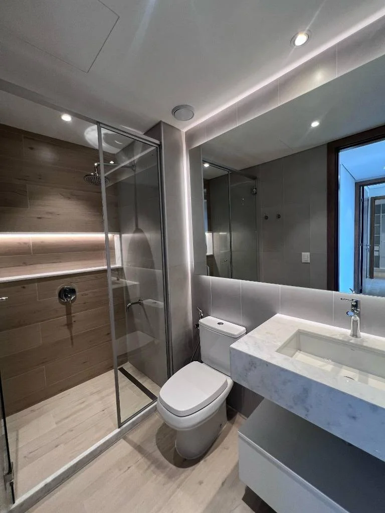 Box de baños con mamparas, espejos y termo calefones