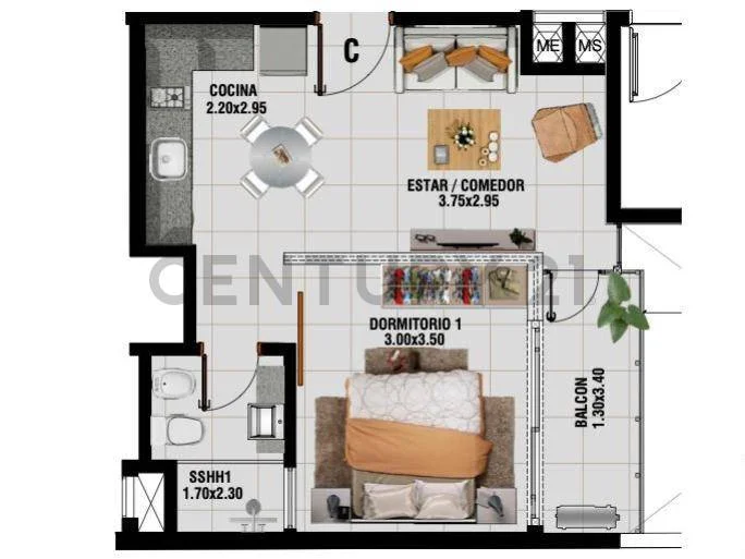 * Sala y comedor integrados