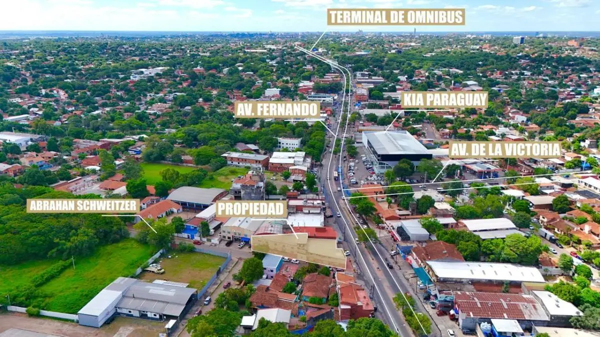 Propiedad en esquina sobre la Avenida Fernando de la Mora, a pocas cuadras de la Terminal de Ómnibus de Asunción, ubicada en una de las zonas más transitadas y comerciales de la ciudad.