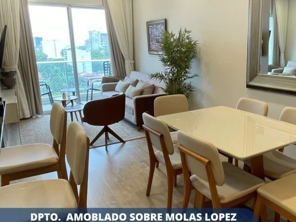 Este hermoso departamento se encuentra en el piso 9 con una hermosa vista, hacia el eje corporativo Se encuentra finamente amueblado con muebles de muy buena calidad, con continas anti solares y AA en todos los ambientes. Dispone de muy buena distribución de 2 habitaciones y 2 baños. Destaque principal: inigualable ubicación, los Amenities del Edificio Forvm, y los muebles todos exclusivos!