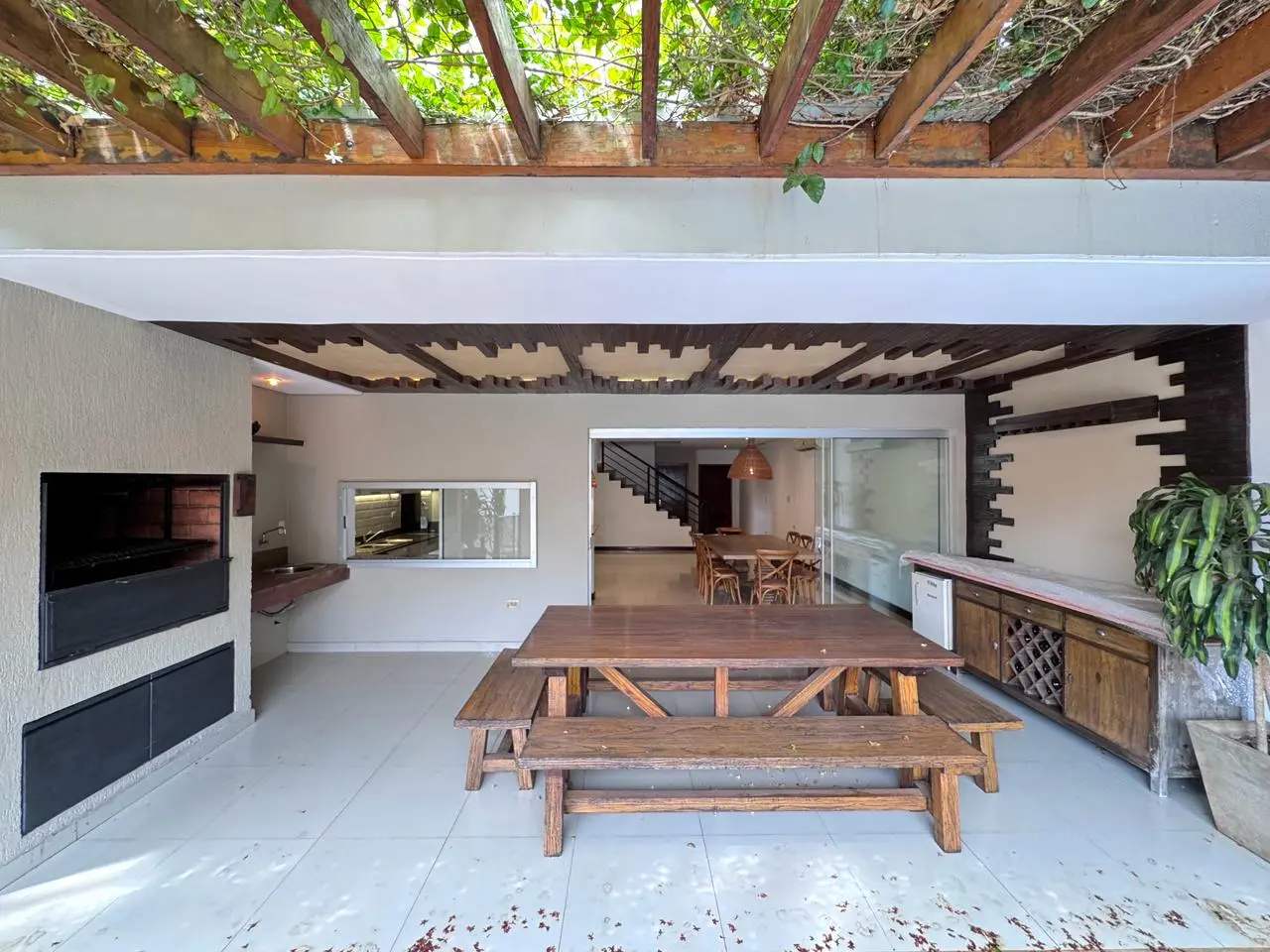 Living-comedor | Escritorio/Dormitorio | Baño social c/ ducha | Cocina c/ desayunador | Acceso de servicio indpte | Amplia galería c/ parrilla y tatakua | Patio c/piscina | Área de servicio c/ dormitorio y baño