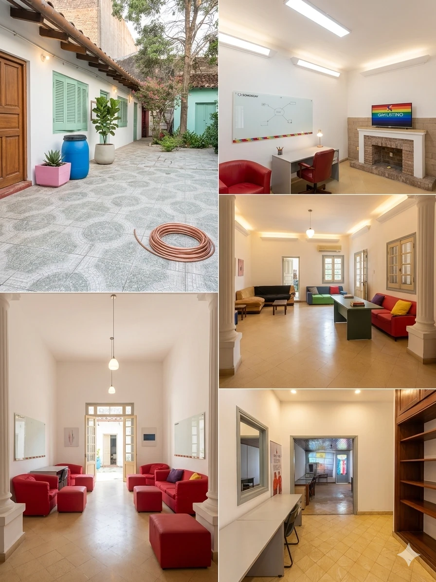 La casa cuenta con 2 salones enfrente que se puede adecuar para garaje, 7 habitaciones , 6 baños, cocina, pequeño patio y área de servicio