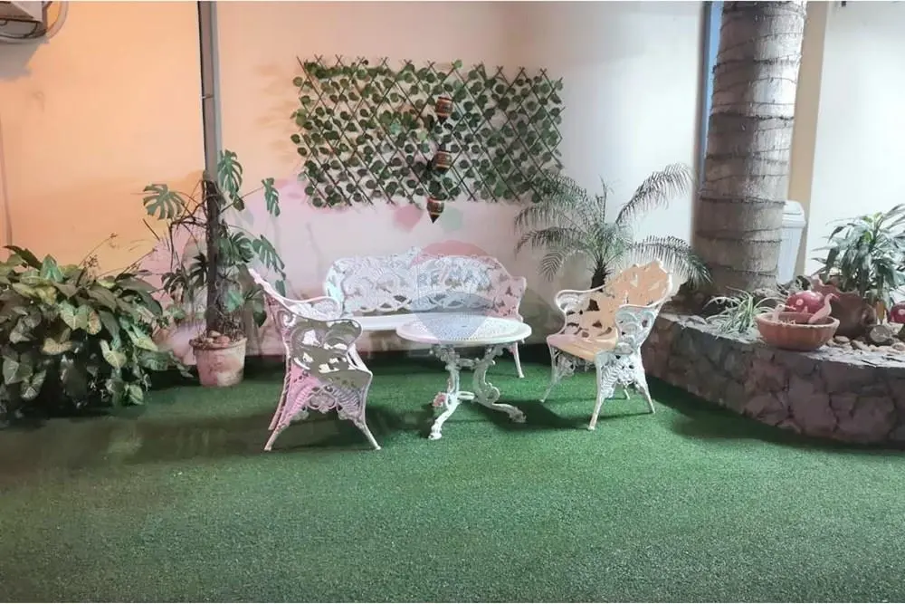 ✔️Un amplio patio con palmeras