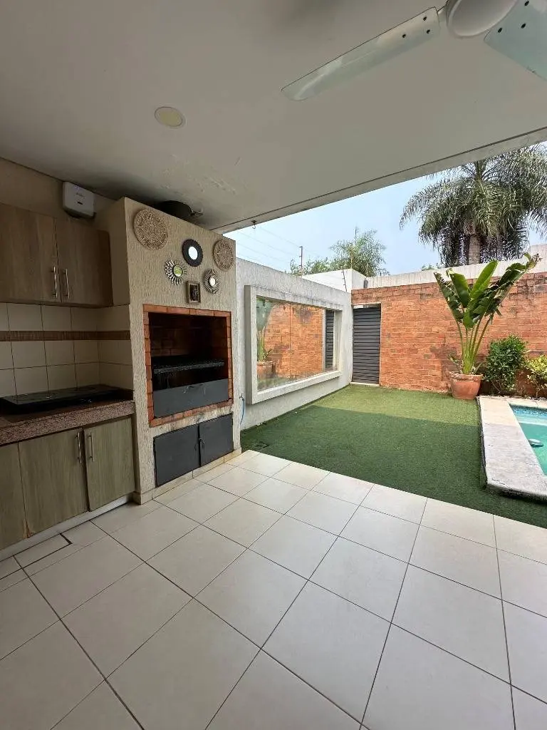 Patio privado con parrilla y piscina
