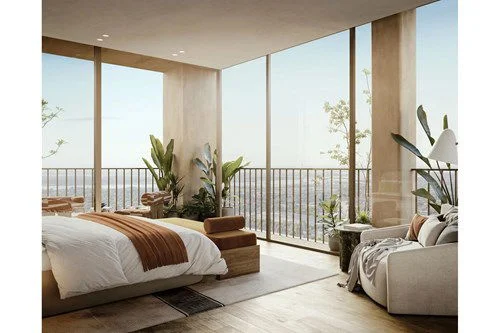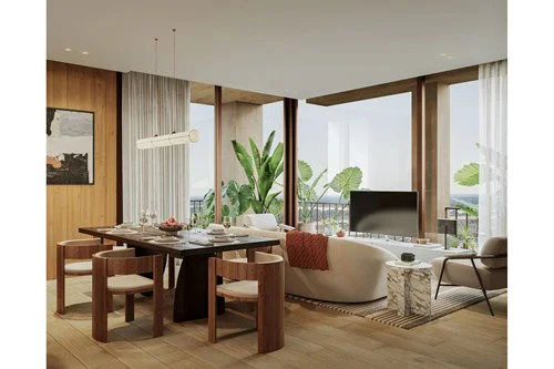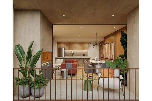 El concepto split permite organizar los ambientes de forma independiente, optimizando la privacidad, la circulación y la iluminación natural. Su distribución moderna y terraza amplia siguen la estética contemporánea del proyecto.