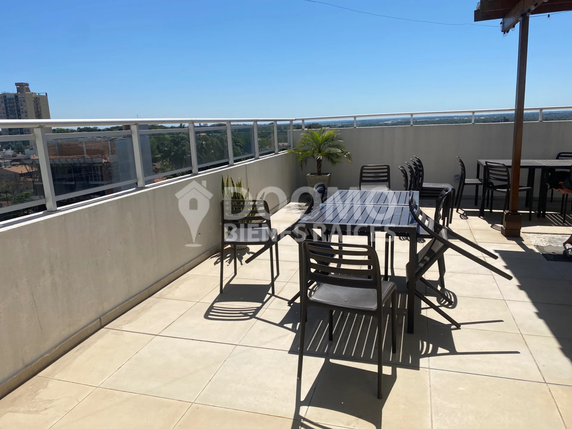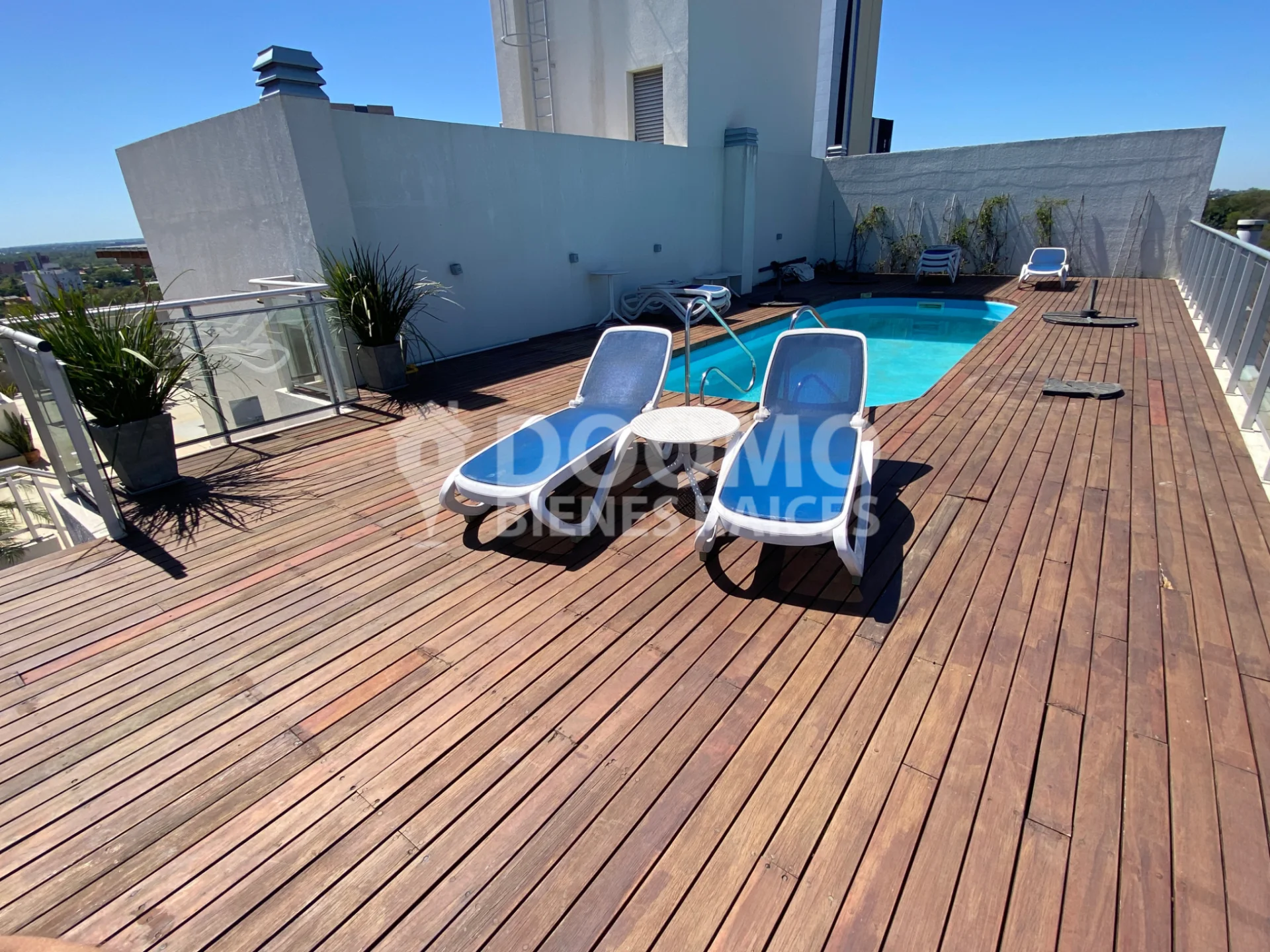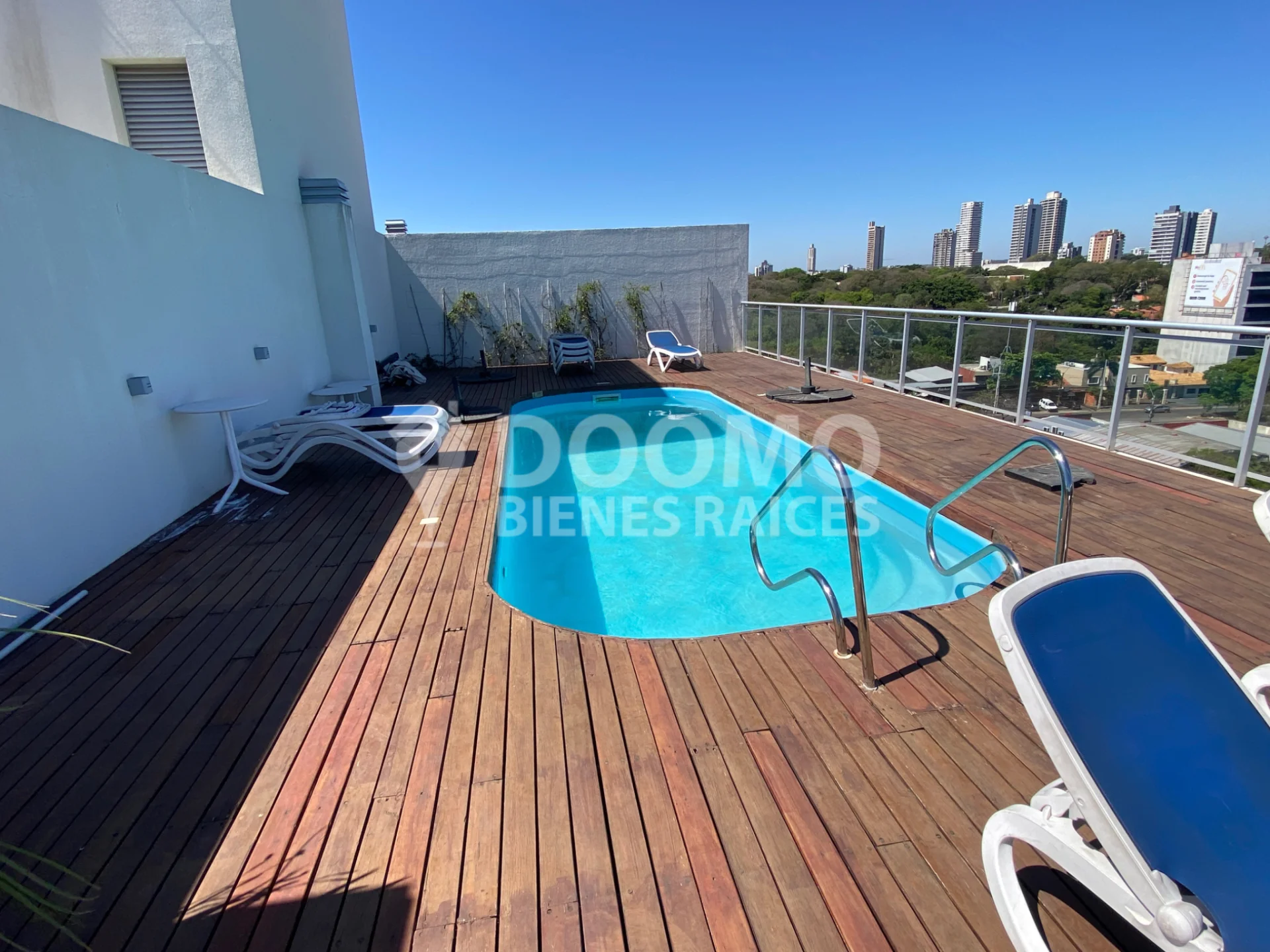 Piscina en la terraza, linda vista hacia la ciudad.